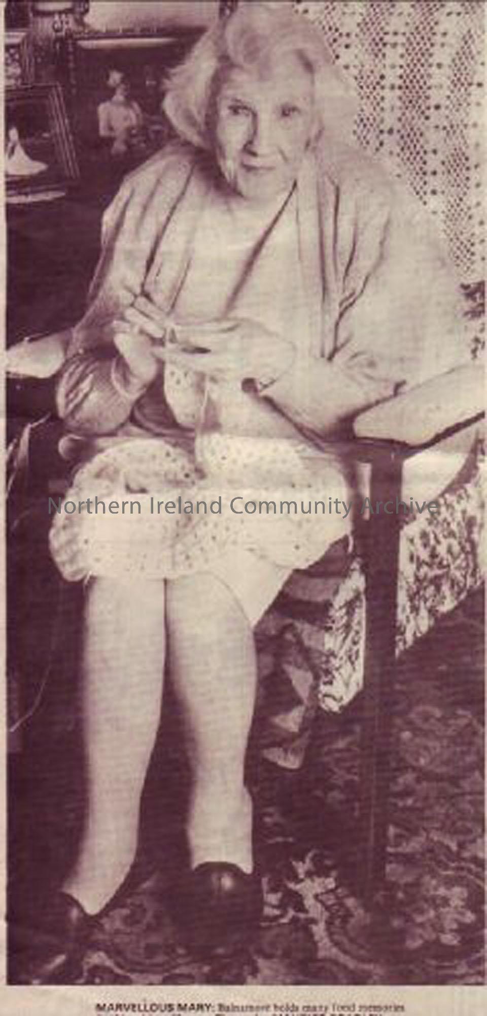 Perhaps best known for her crochet work, Balnamore lady Mrs Mary Hunter, at 83 years of age, appears as spritely now as I'm sure she was in the days she worked at Balnamore Mill.