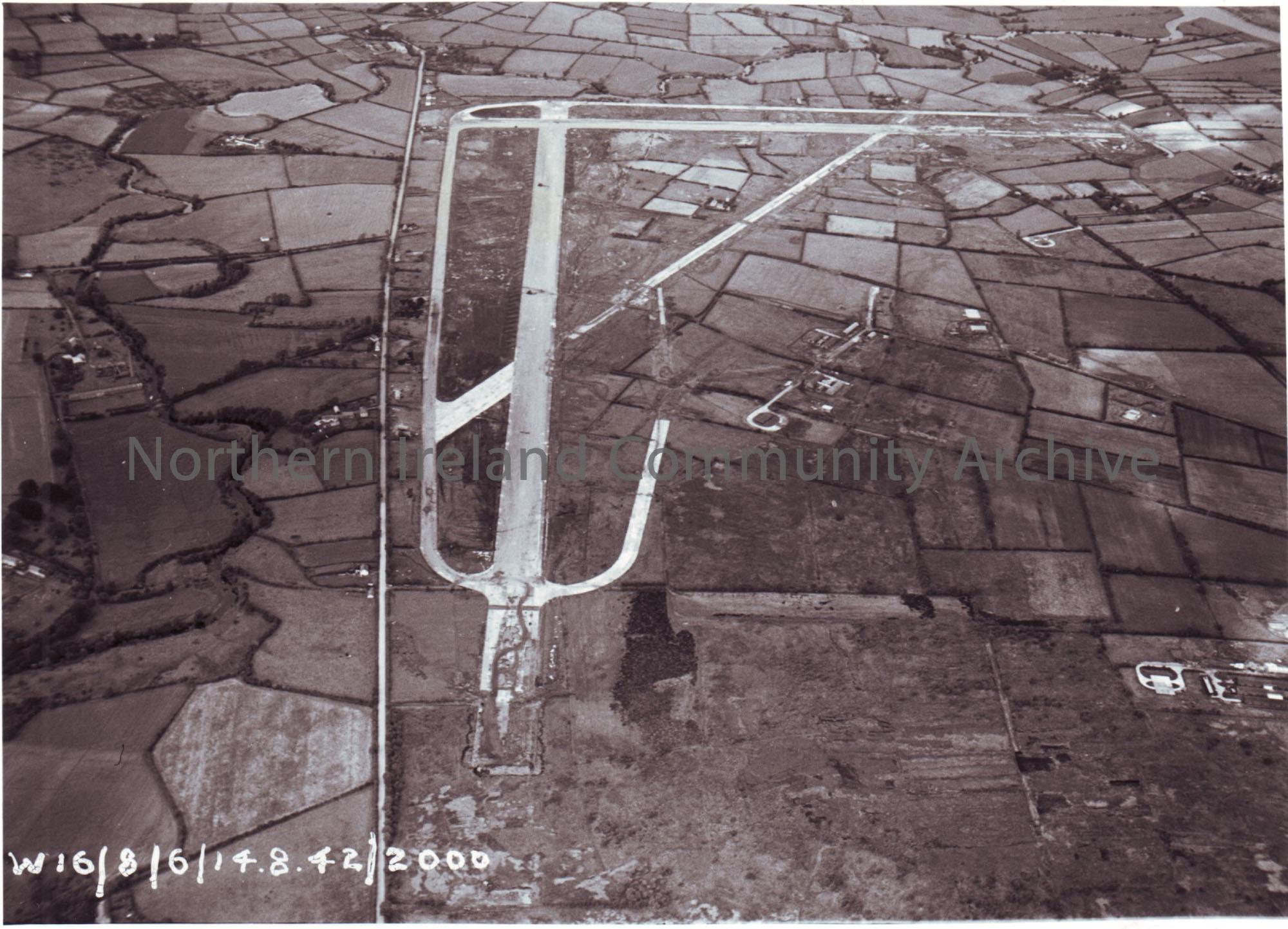 Mullaghmore Airfield, Aghadowey, aerial photograph showing a landing runway, surrounded by fields