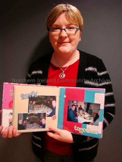 ‘I received this memory book or scrapbook in the post for my 40th birthday. It was made by my cousin’s wife, Katrina Black. When I look through it, I think of her sitting in her special craft shed in the garden in January, putting this book together for me. I treasure it because of the time and effort she put into collecting the photos and presenting them in such a lovely way and because the photos bring back memories of special family times. It is something that has become a treasure for me very quickly’.