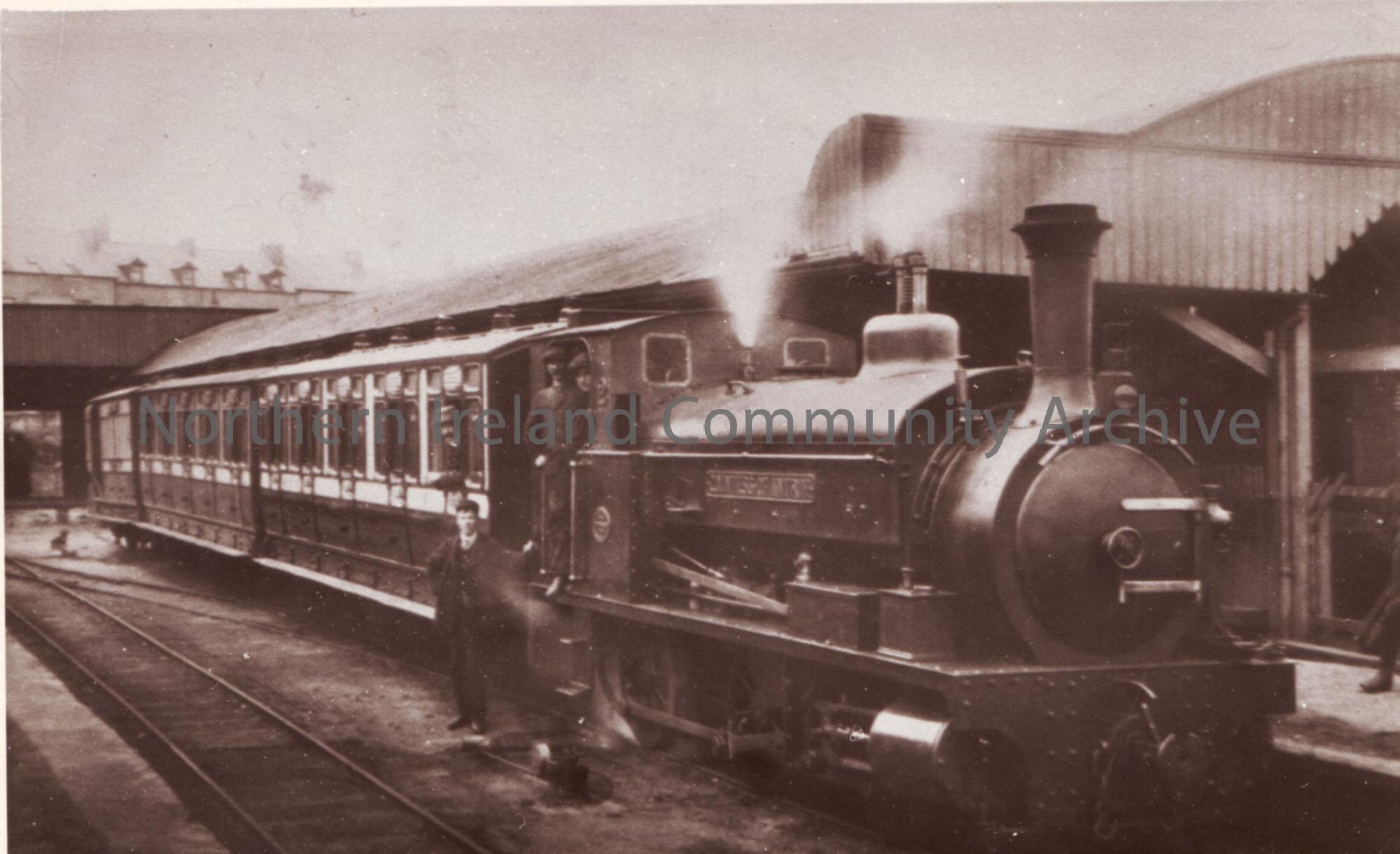 Narrow Gauge Train in Ballycastle Station with Mr H. Doherty, guard, Ballymoney.