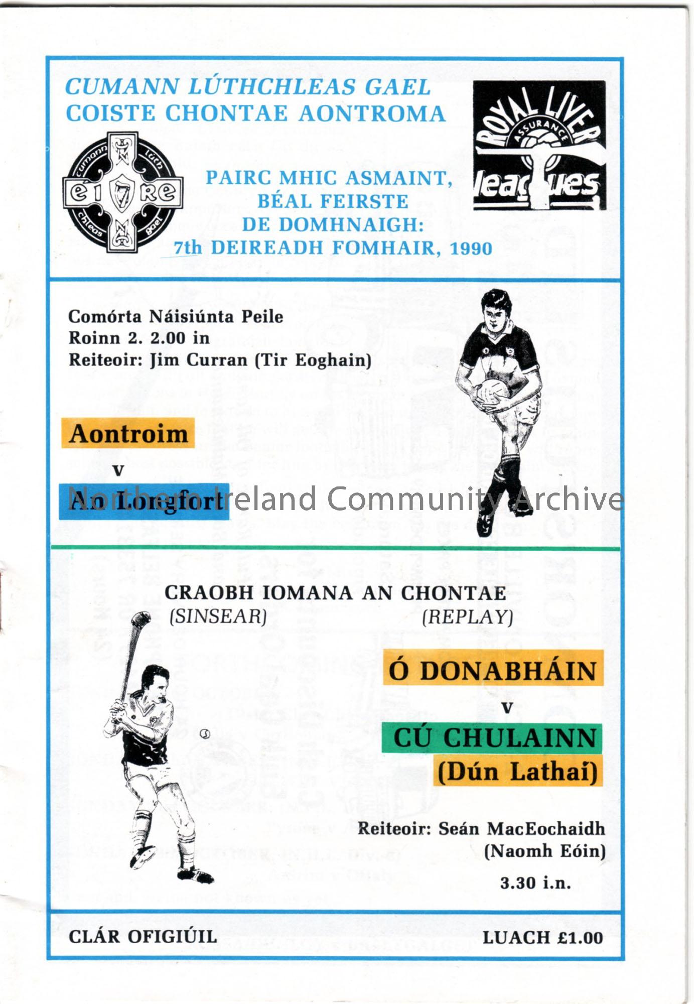 National Football League Division 2 Antrim v Longford and Antrim County Hurling Final Replay O'Donovan Rossa v Dunloy Cuchullains at Casement Park. 7th October 1990 Dunloy's first County Antrim Championship title