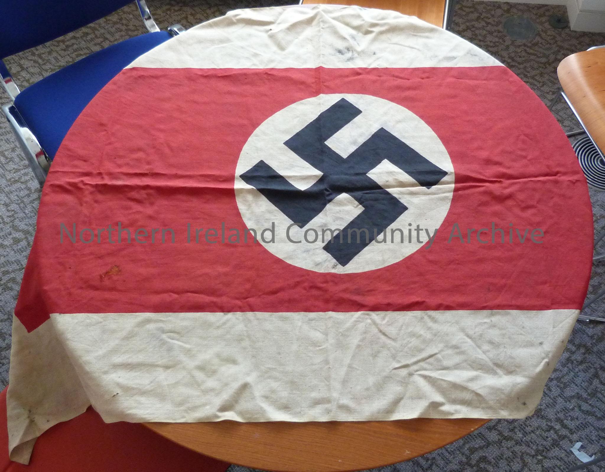 Nazi flag. Cream flag with large red stripe and swastika in the middle of a cream circle