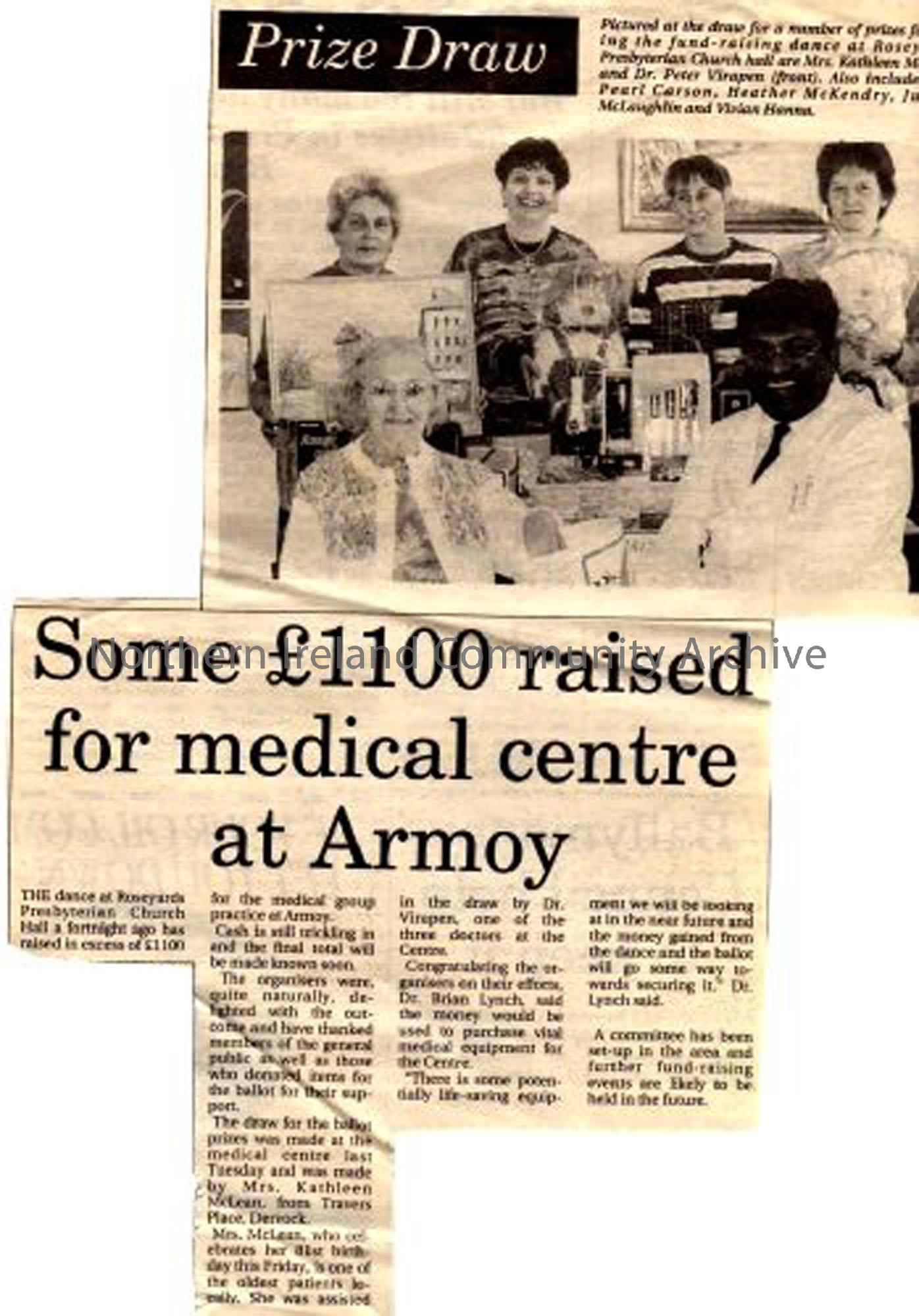 Newspaper clipping about money raised for medical centre, Armoy (5662)