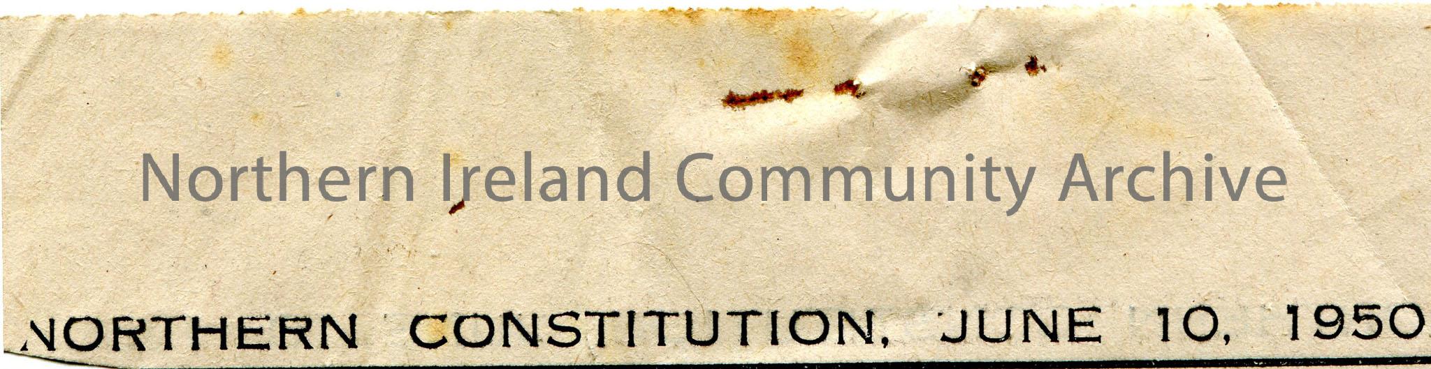 Newspaper cutting from the Northern Constitution, 10th June, 1950. Cut out of name of newspaper and date.