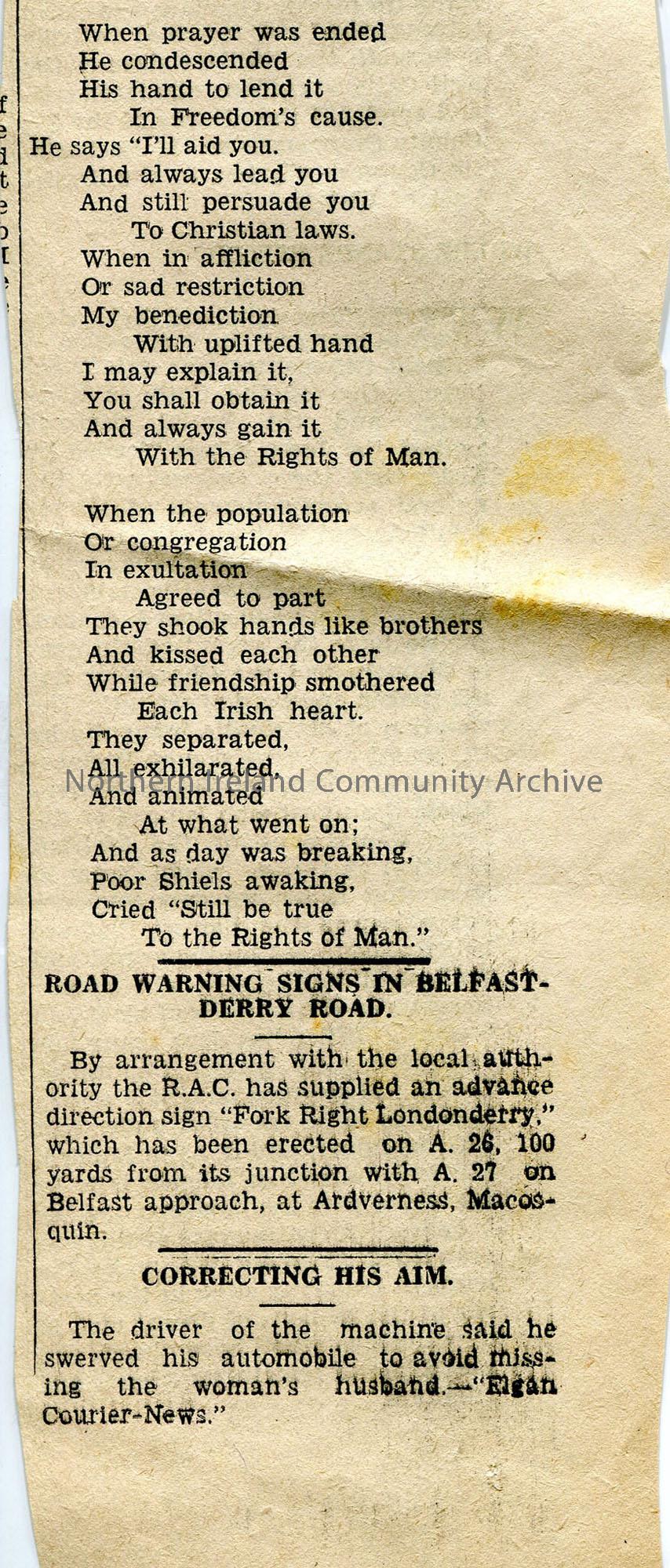 Newspaper cutting of words to poem 'The Rights of Man'
