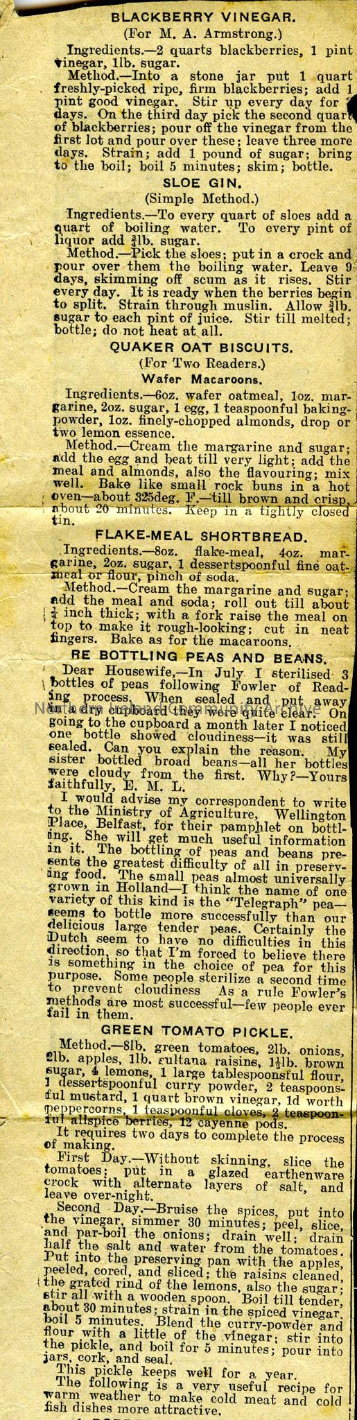 newspaper cutting with range of recipes –...