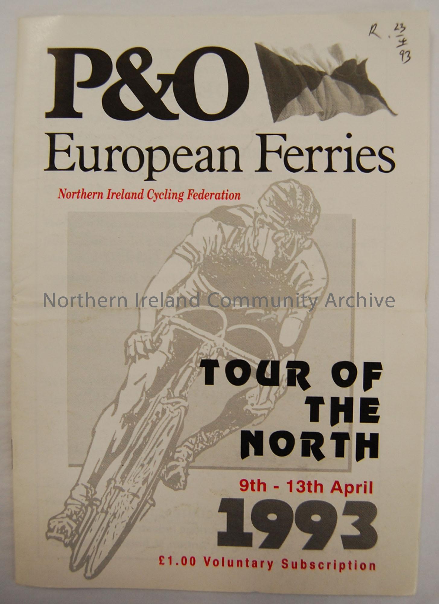 Northern Ireland Cycling Federation Tour of the North 9-13th April 1993. Supported by P&O European Ferries.