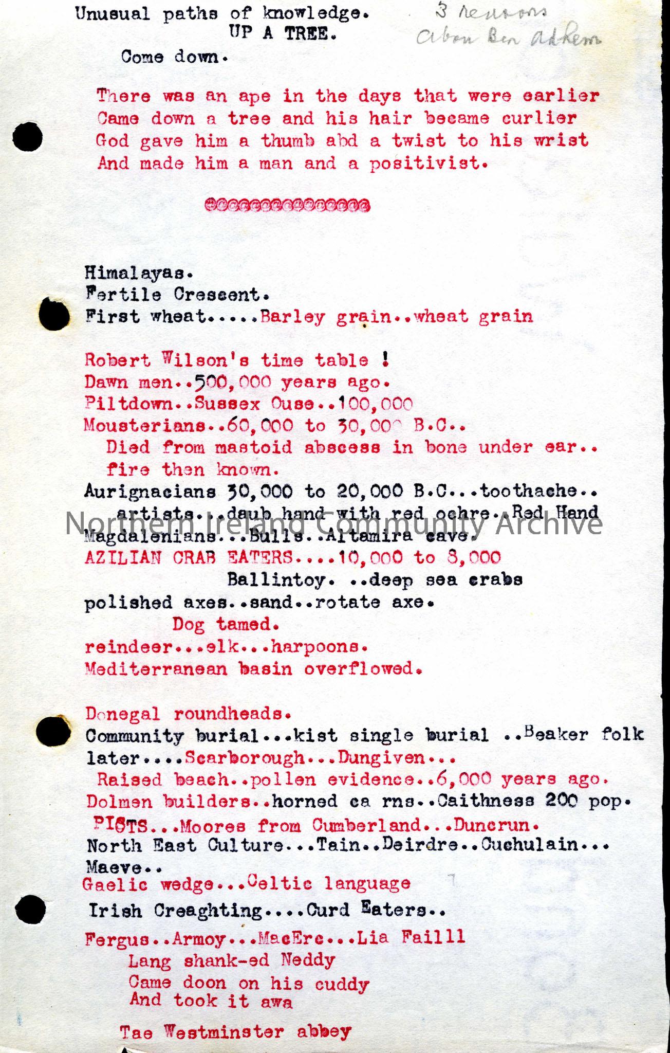 Notes entitled “Unusual paths of knowledge”. They refer to early man and his evolution mentioning crops being grown, cave art, polished axes, ancient …