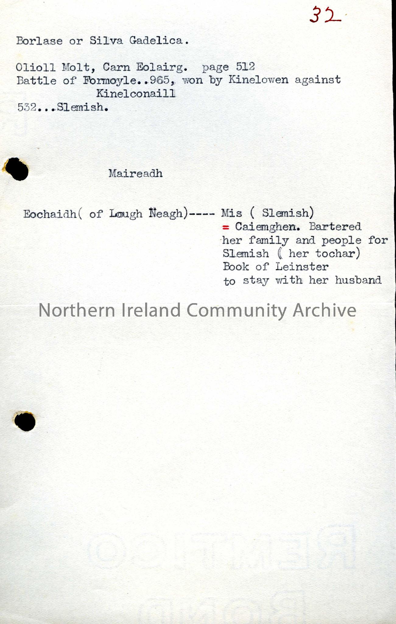 Notes mentioning the Battle of Formoyle and Maireadh.