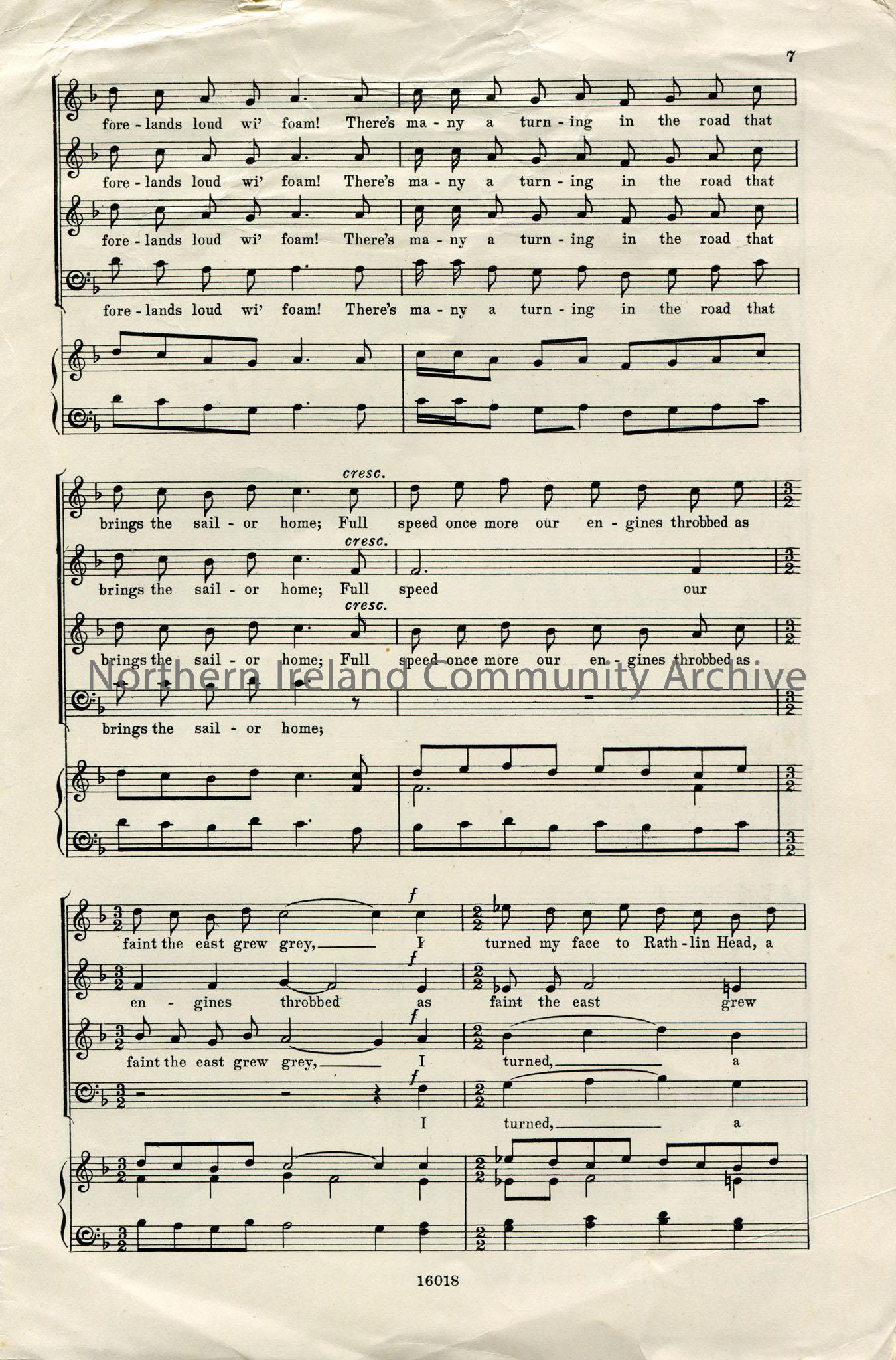 Novello's Part-Song Book. The Sailor's Garland, words by C. Fox Smith, music by Alec Rowley. No.7 Rathlin Head. Booklet of sheets of music. 2 separate pages, 8 sides in total.