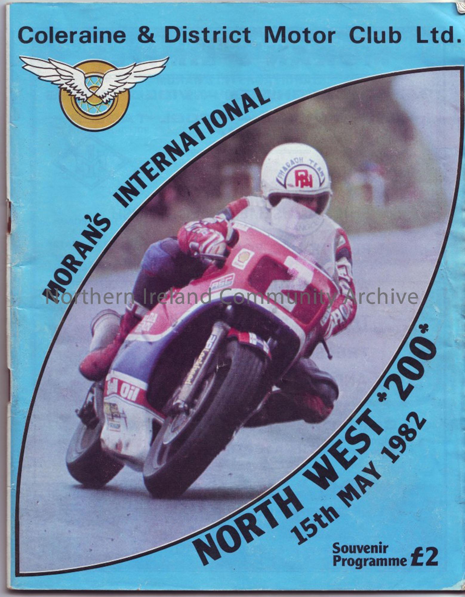 Official Programme of the North West 200, 1982. Includes lists of Entrants in each class and lap score charts.
