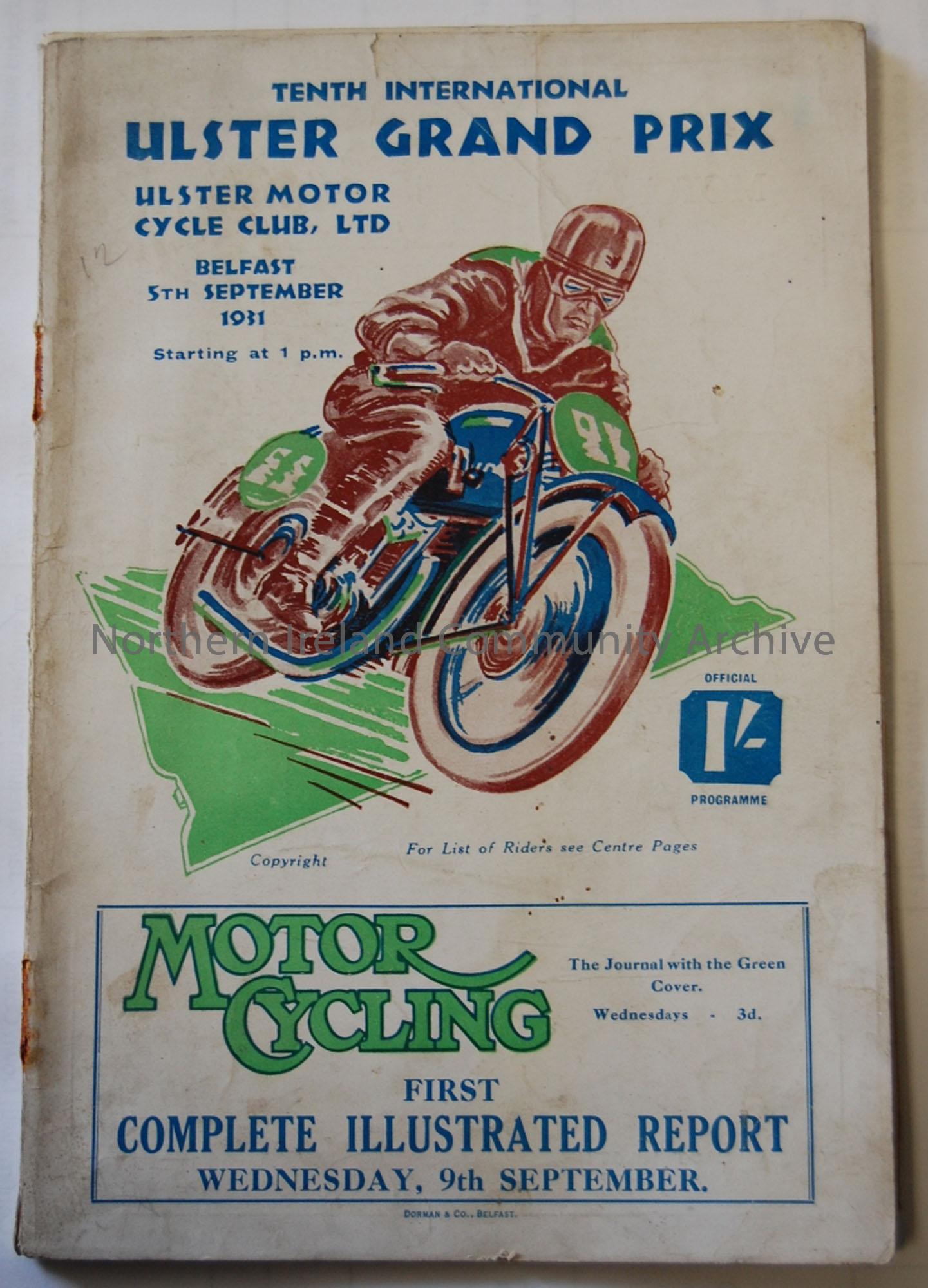 Official Souvenir programme- 10th Classic International Ulster Grand Prix 5th September, 1931 Price 3d.