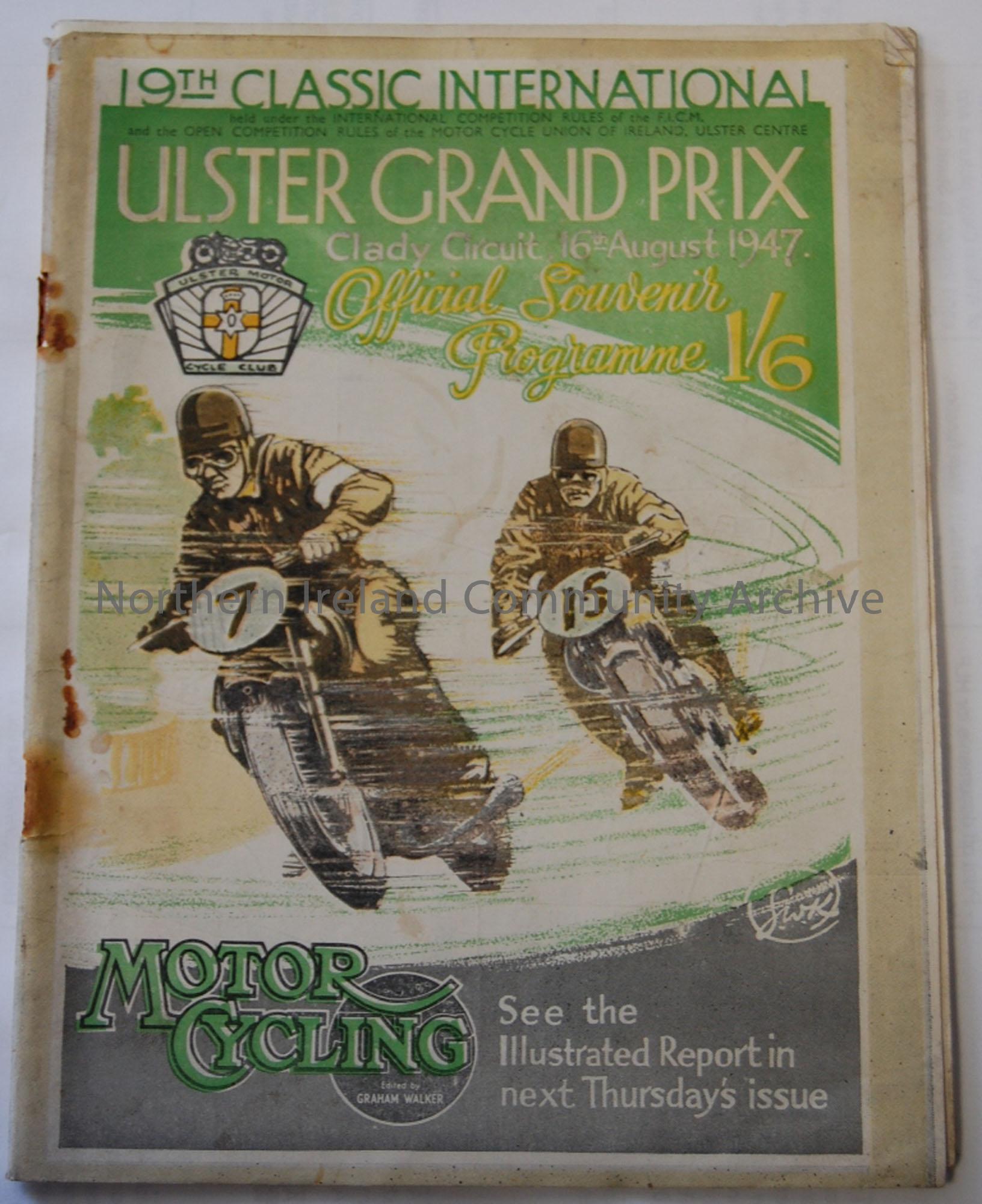 Official Souvenir programme- 19th Classic International Ulster Grand Prix 16th August, 1947