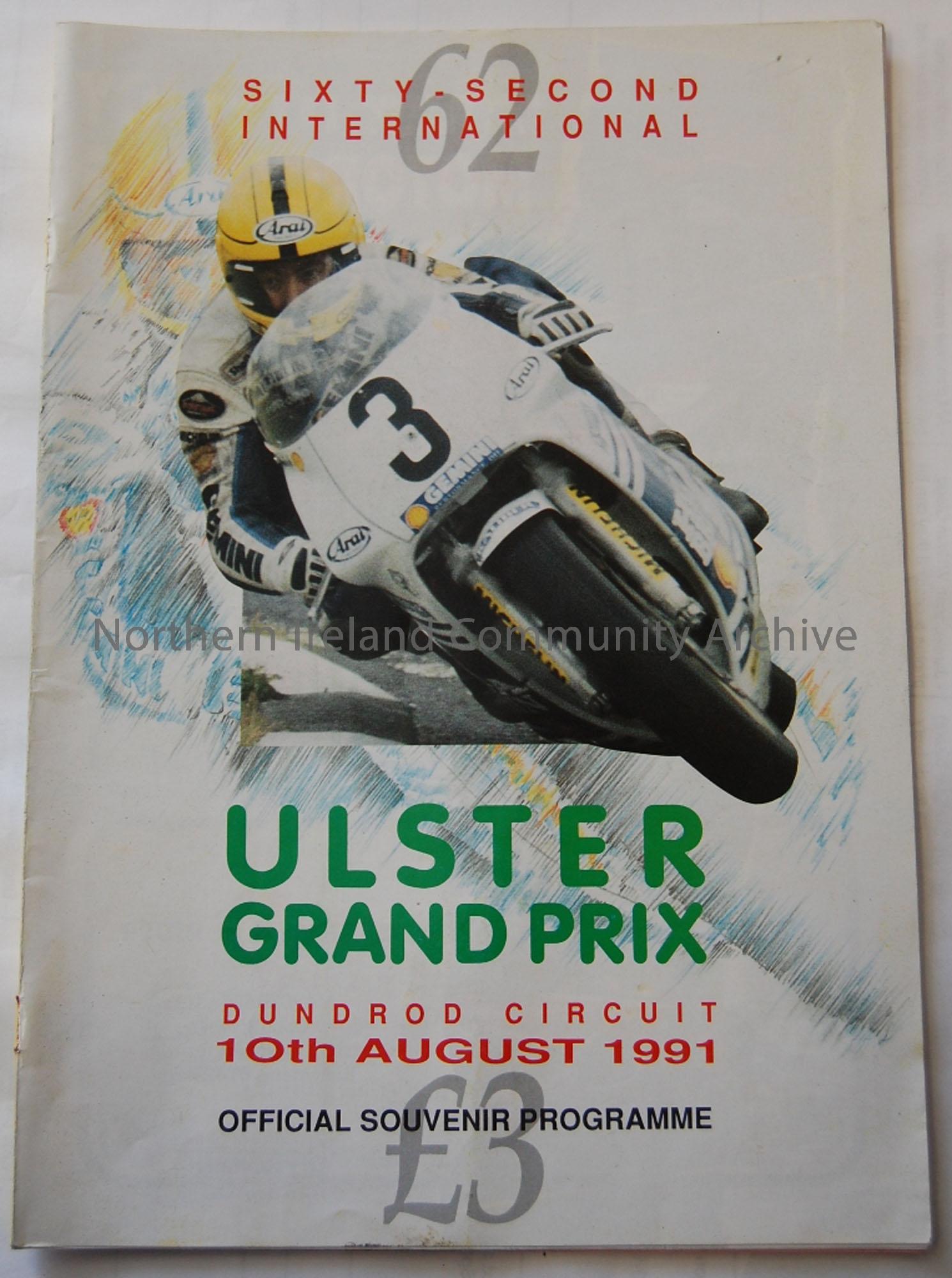 Official Souvenir programme- 62nd Ulster Grand Prix 10th August, 1991 (Joey Dunlop on front cover)