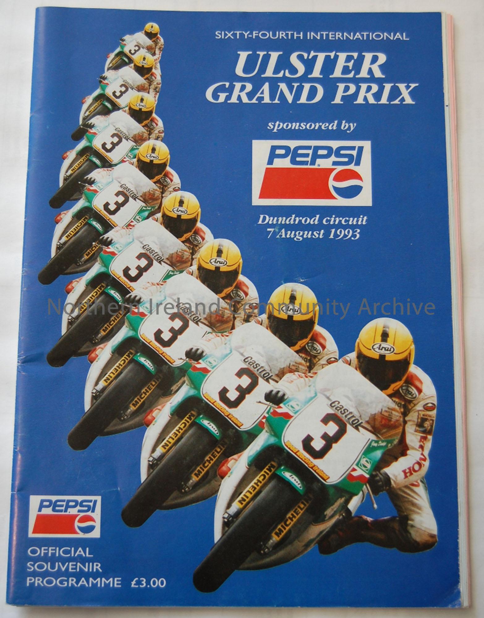 Official Souvenir programme- 64th Ulster Grand Prix 7th August, 1993 (Joey Dunlop on front cover)
