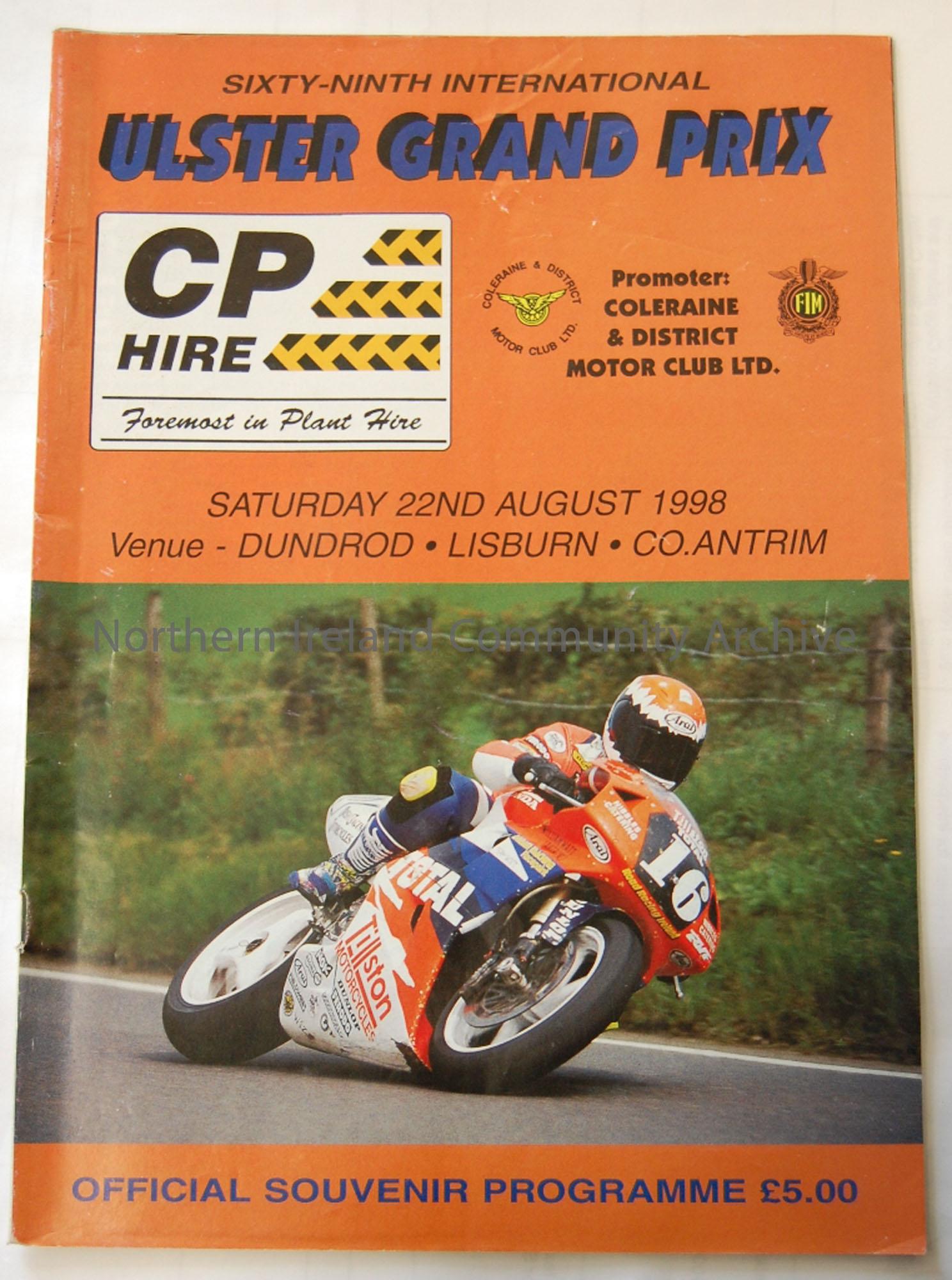 Official Souvenir programme-69th Ulster Grand Prix 22nd August, 1998