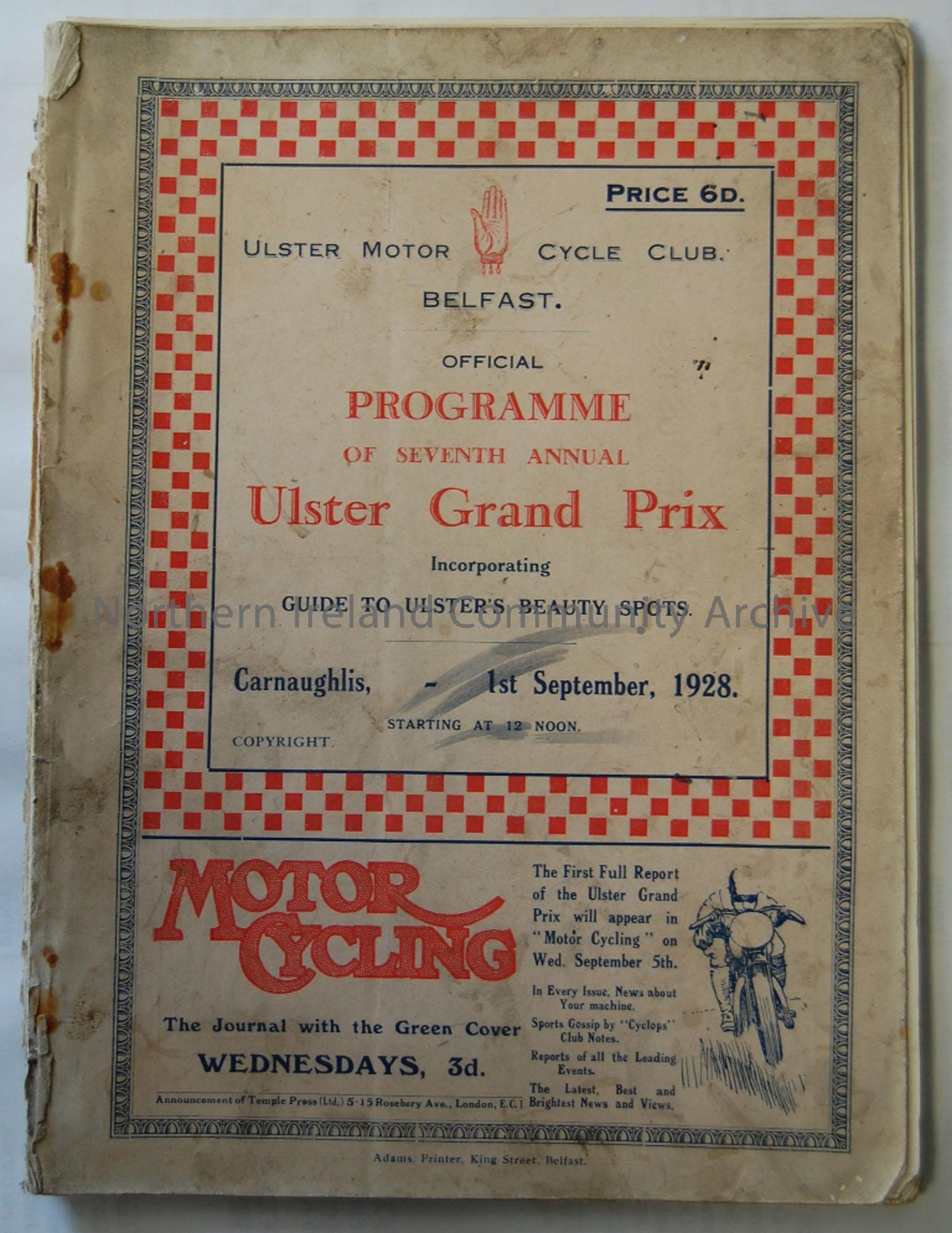 Official Souvenir programme- 7th Ulster Grand Prix 1st September, 1928 Incorporating Guide to Ulster’s Beauty spots.