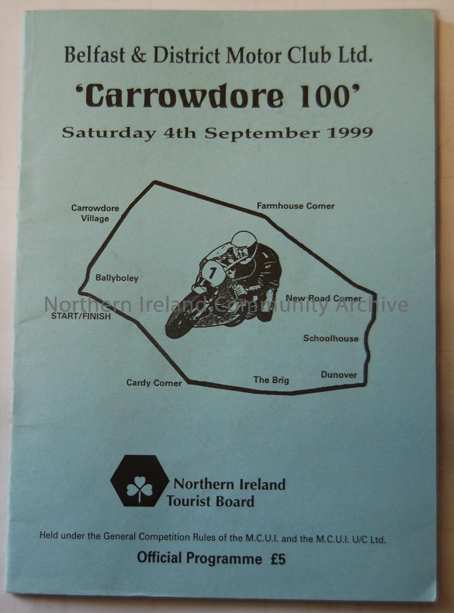 Official Souvenir programme- Belfast & District Motor Club Ltd ‘Carrowdore 100’ Saturday 4th September 1999. Price £5