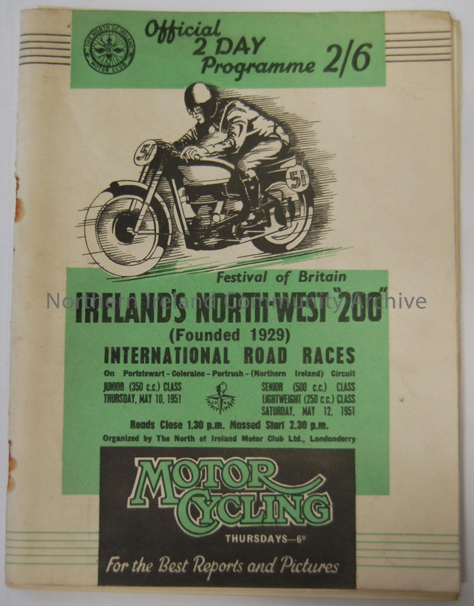 Official Souvenir programme- Ireland’s North-West 200 1951