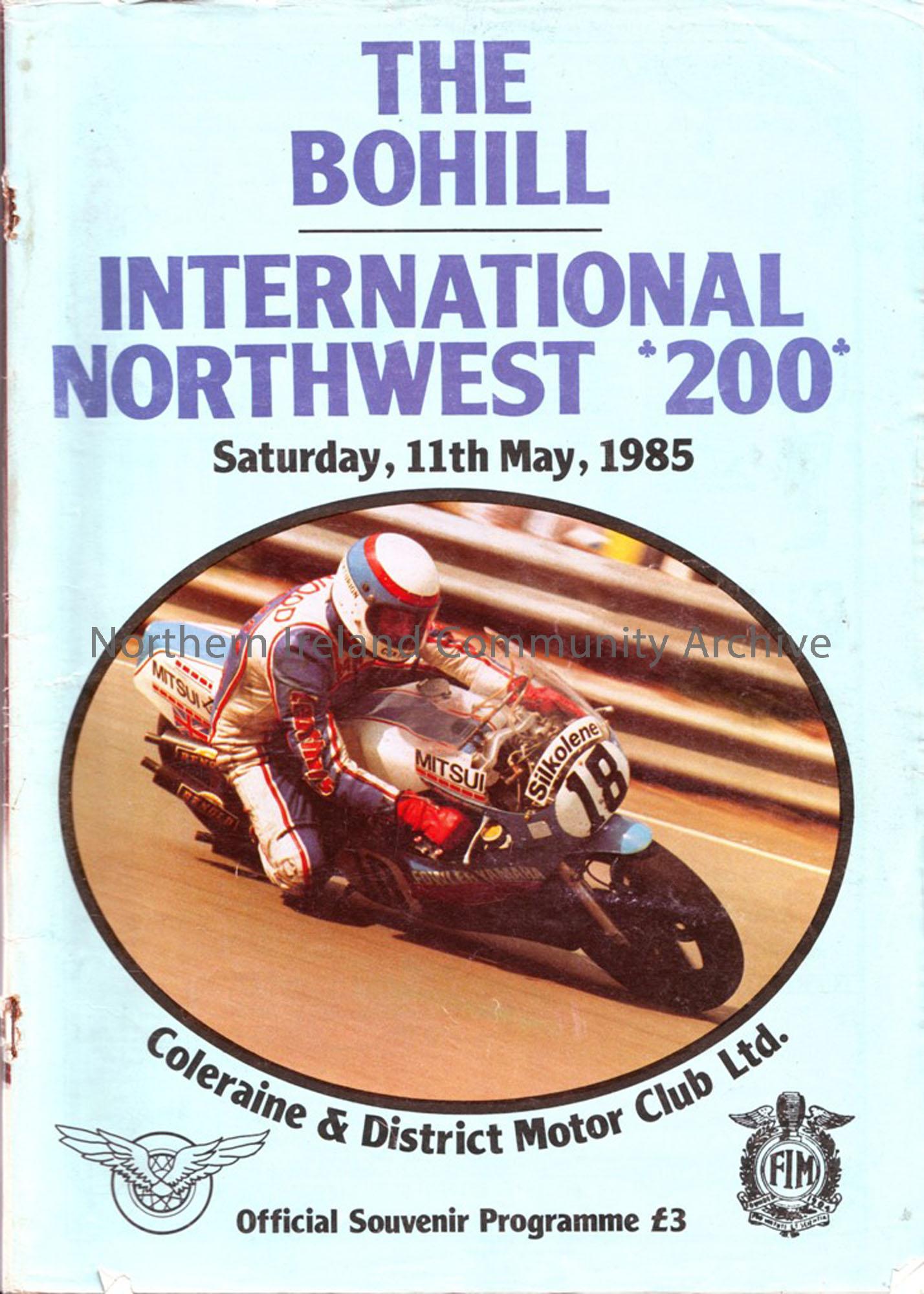 Official Souvenir Programme of the North West 200, 1985. Includes lists of Entrants in each class and lap score charts.