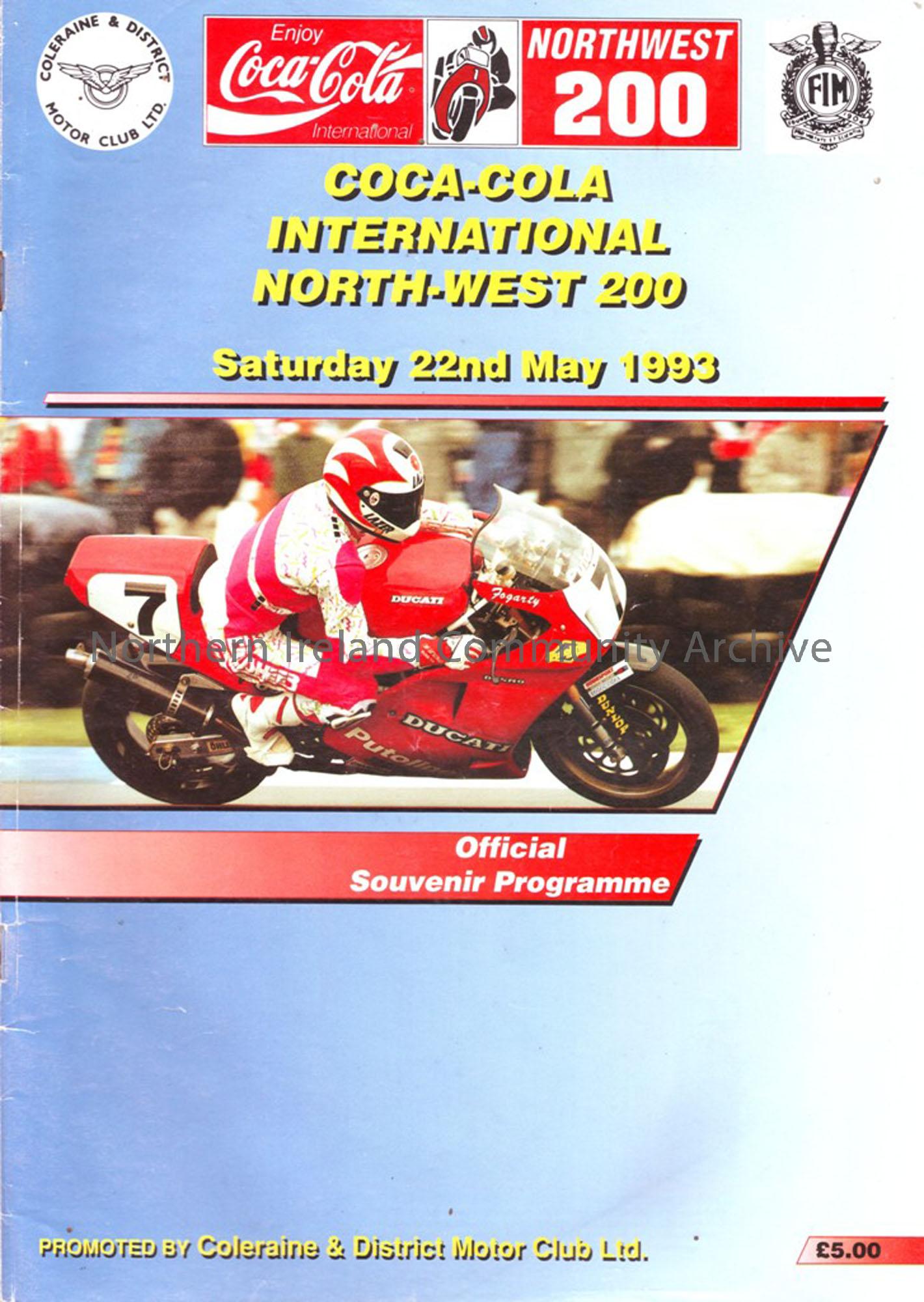 Official Souvenir Programme of the North West 200, 1993. Includes lists of Entrants in each class and lap score charts.