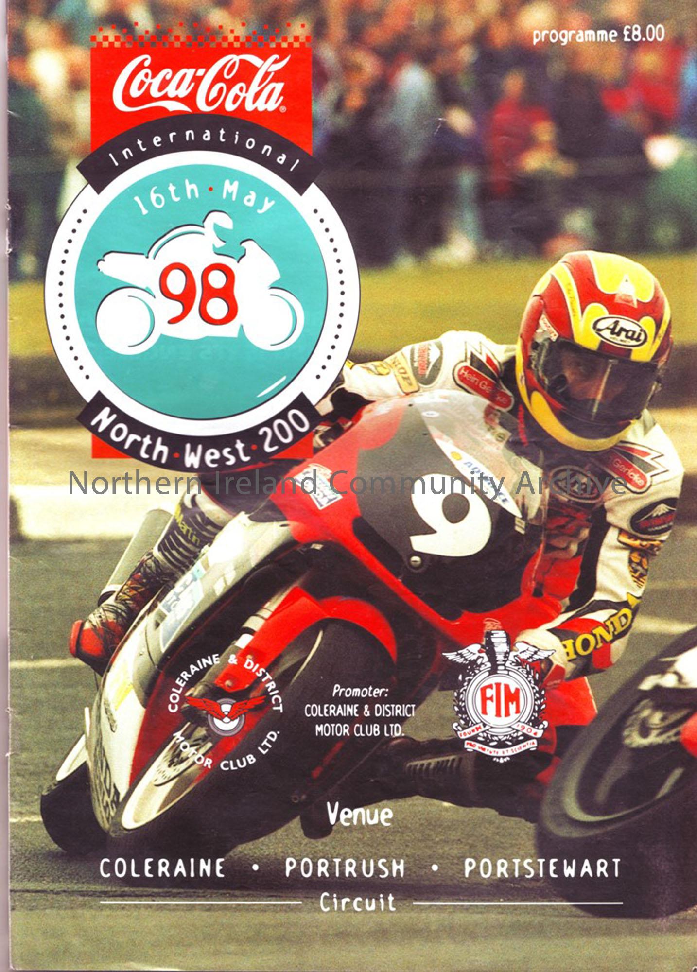 Official Souvenir Programme of the North West 200, 1998. Includes lists of Entrants in each class and lap score charts.