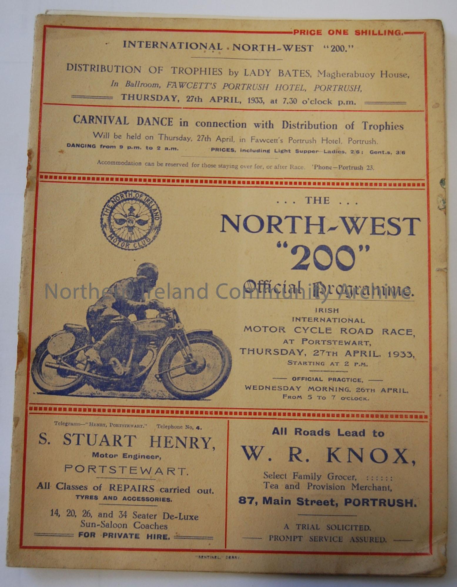 Official Souvenir programme- The North-West 200 Thursday 27th April 1933