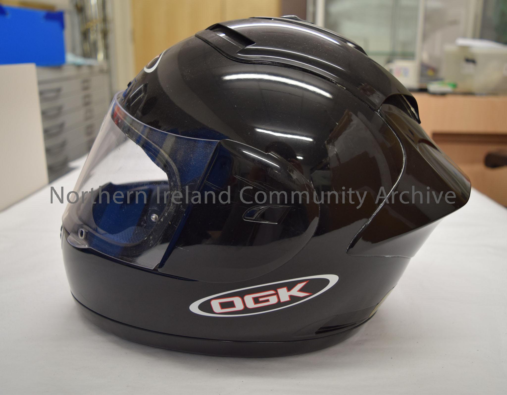 OGK helmet belonging to Ben Smith. Plain black. – 2016.34 (3)