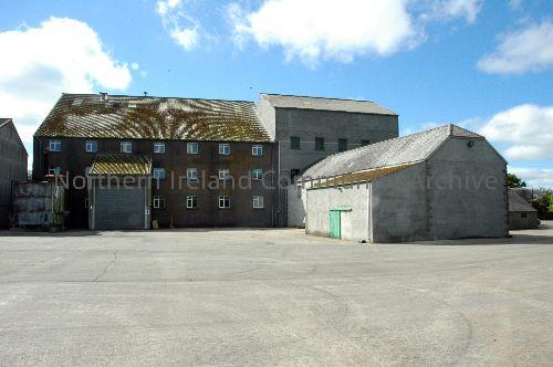 Old Mill in Stranocum. Now a modern feedstock facility but once a corn mill and a flax scotching mill powered by two water wheels of the bucket variety.