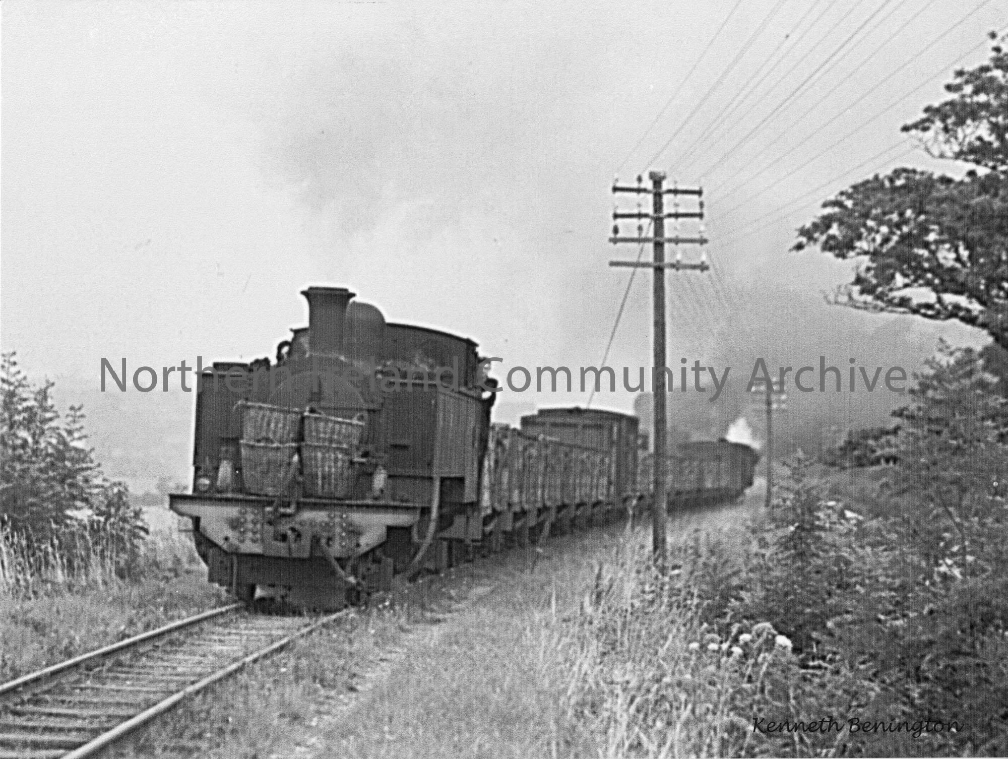 On route to the Lammas Fair. This is a sheep special which required two locos for the steep climb to capecastle. The fireman is Jim Beattie of Balnamore