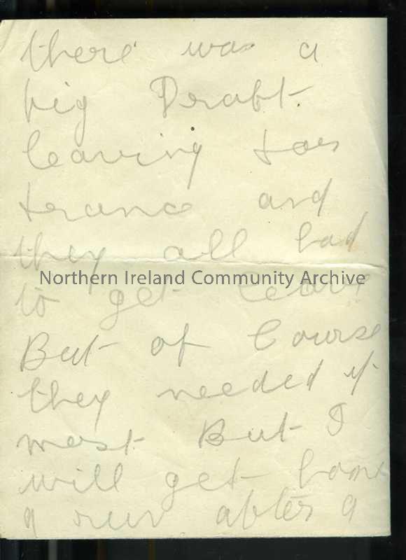 one folded double page handwritten letter from James to his father. Did not get home for Easter as other troops being sent to France had to have leave first