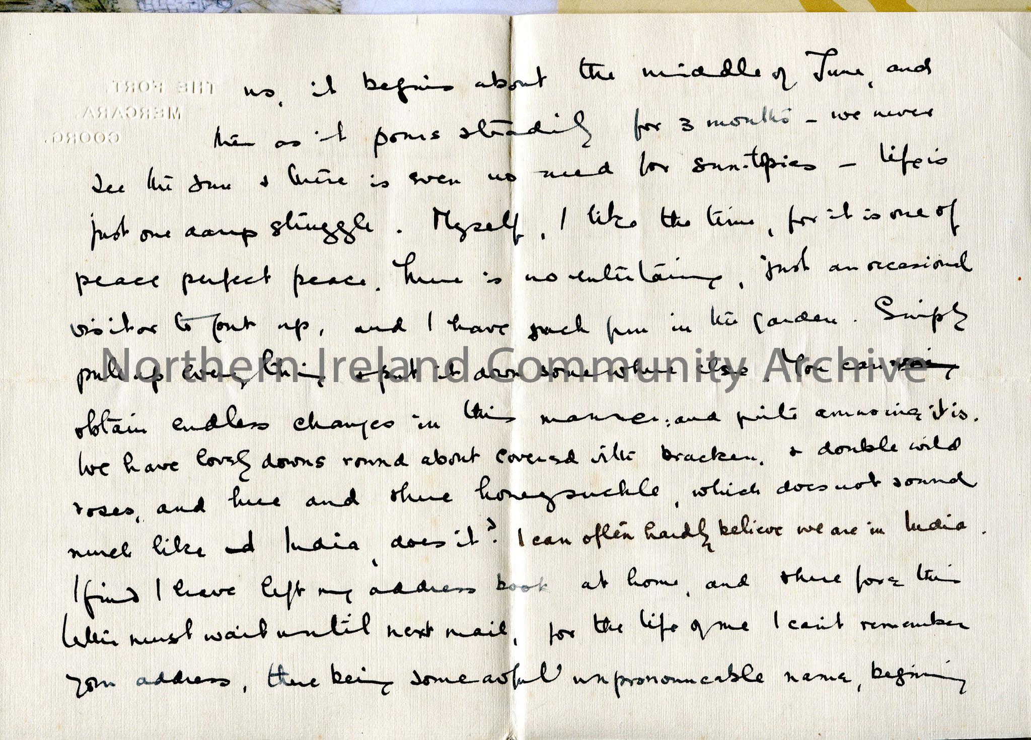 One of 2 double pages of handwritten letter, covering all sides. Writes from India. Talks of: thanks for sympathy [does not name who has died]; stayin… – img002b