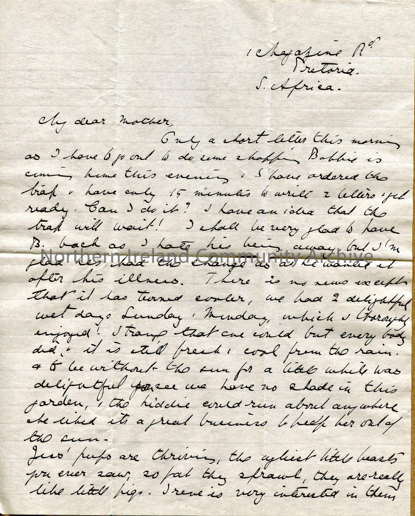 One of 2 pages of handwritten letter. Bobbie is returning home but was glad of the change away after his illness