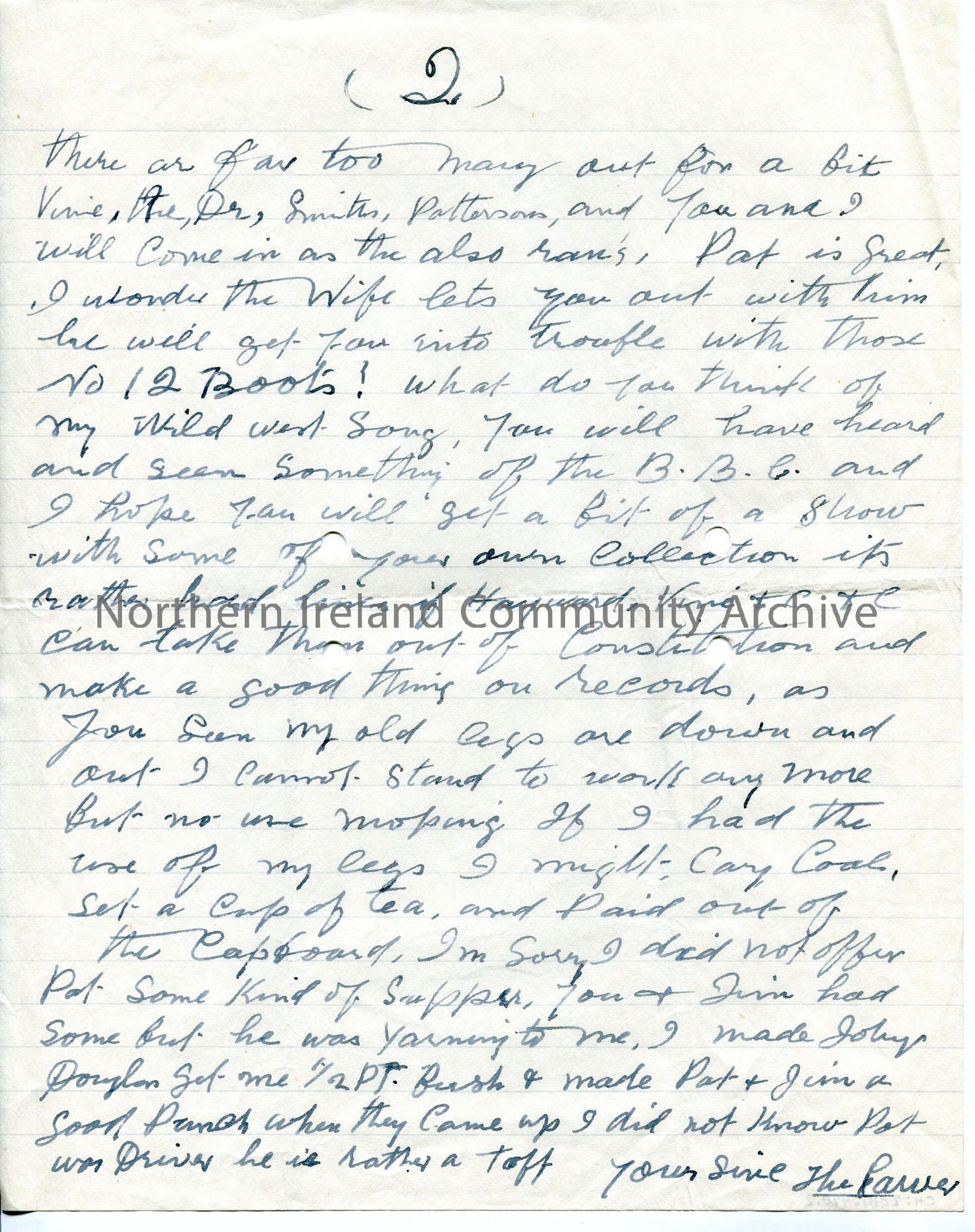 One of 2 pages of handwritten letter – discussion of copyright issues over his words to song, ‘Vine’ being given same and can do as he wishes – menti…