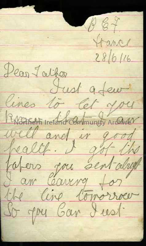 One of 2 pages of handwritten letter in pencil from James to his father. Going back to ‘the line’ but not sure if rejoining old company