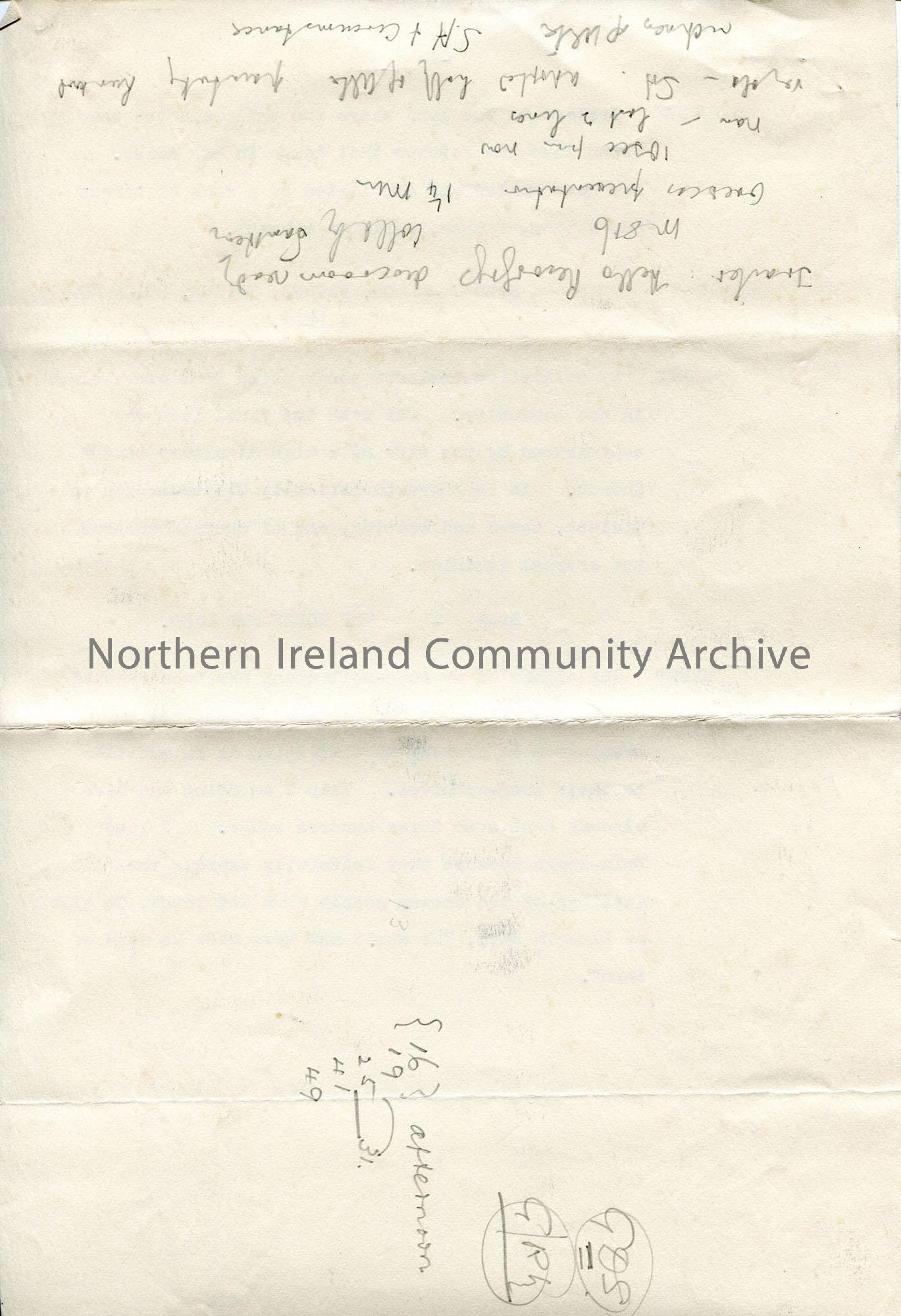 One of 2 pages of typed script under heading 'Music of Britain - Collected by Sam Henry' - the programme recorded on 10th May 1941. In red print at top - dates of broadcast. On page 2 refers to song 'The Bonny Wee Lass' as 'characteristically Ulster-Scotch in dialect, theme and setting'