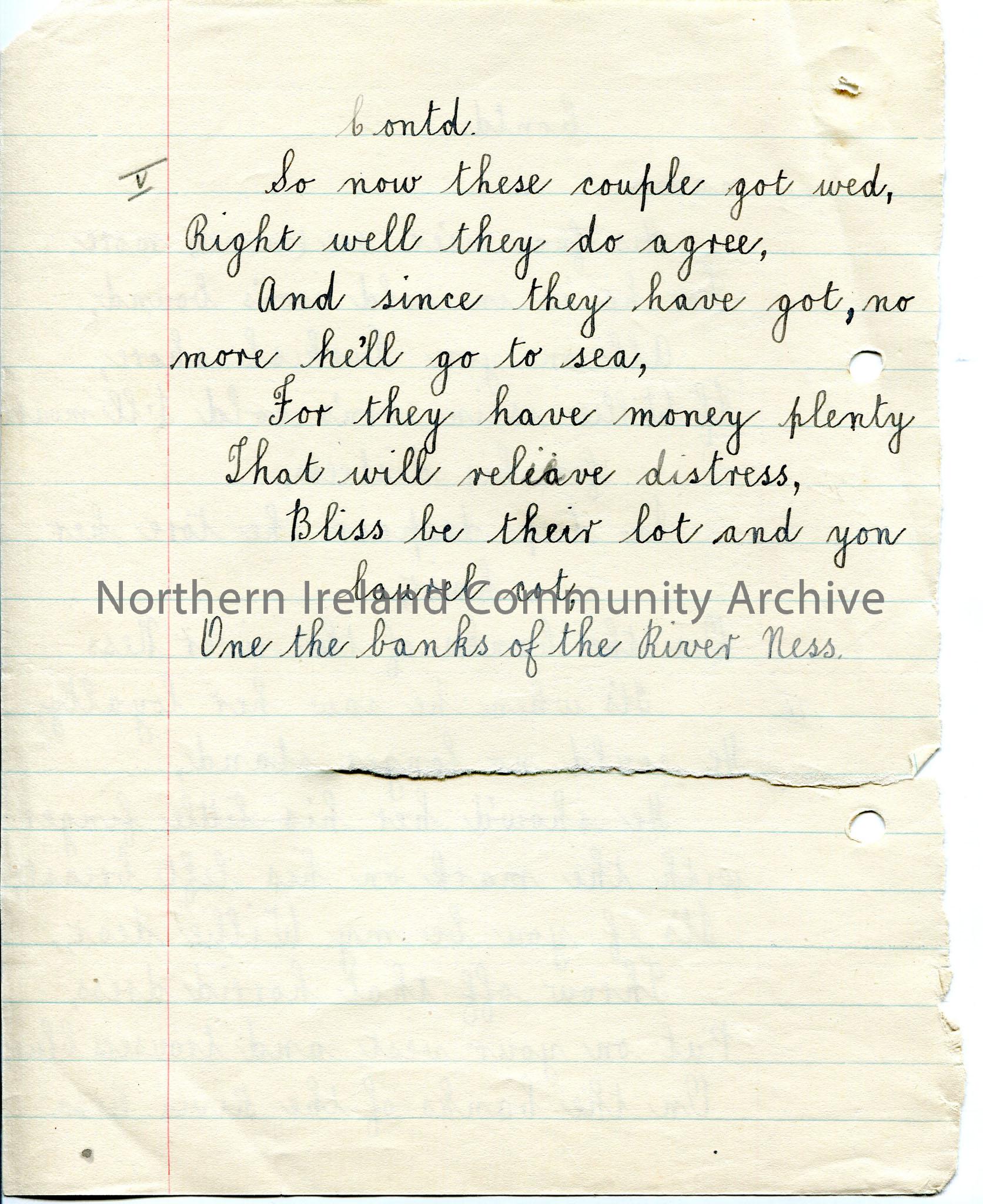 One of 2 pages with handwritten words on both sides to ‘The Sailor Boy’. Mentions River Ness. – img785