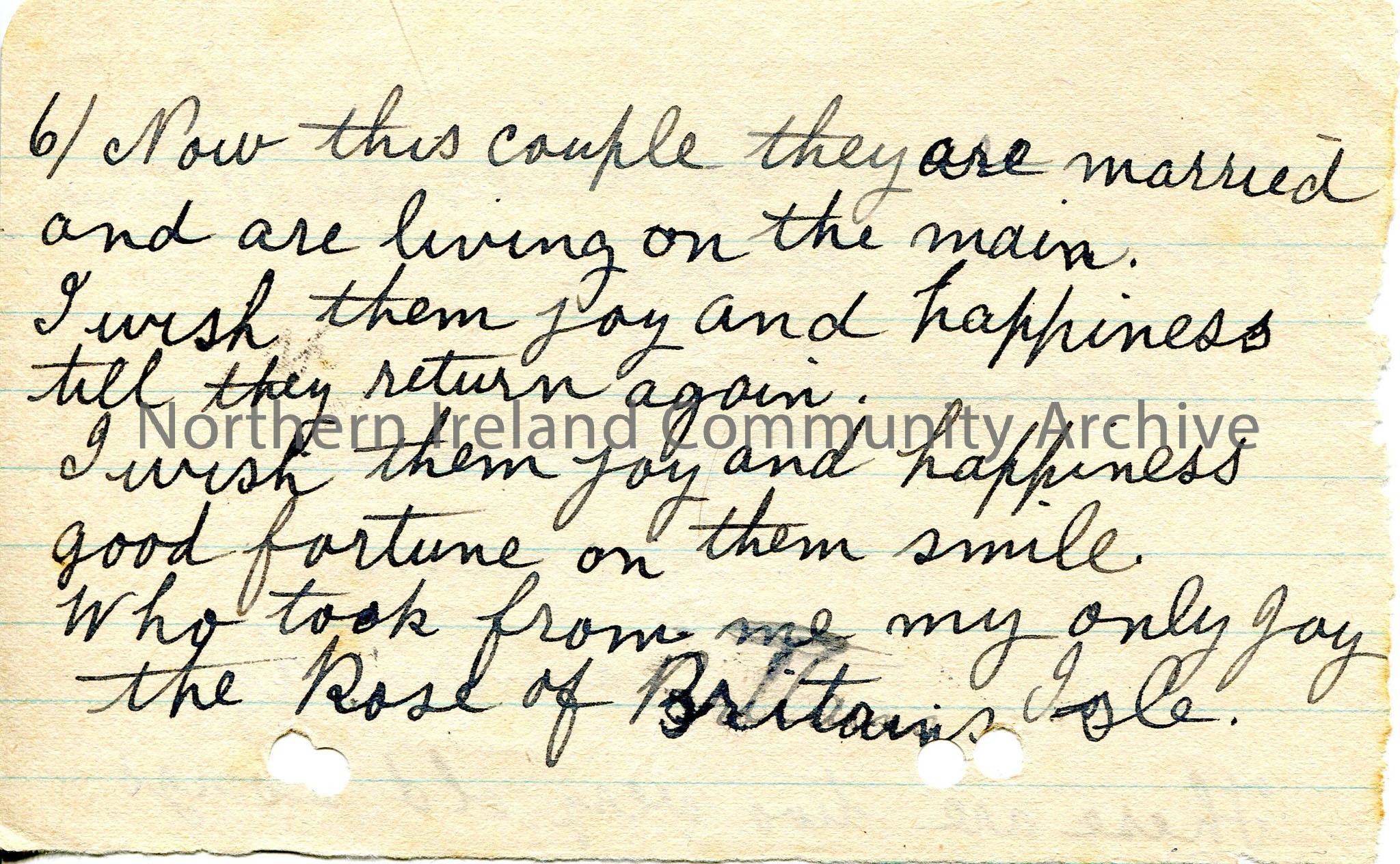 One of 2 pages with handwritten words to ‘The Rose of Britain’s Isle’ – img803