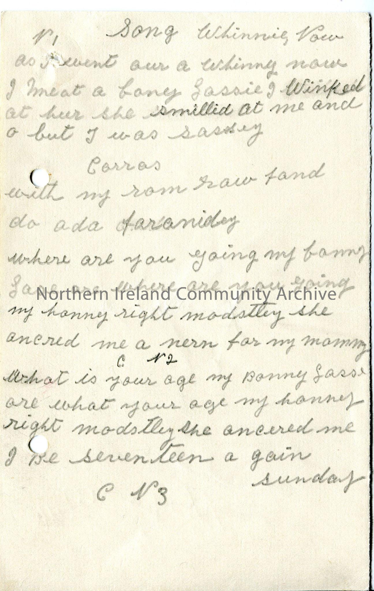 One of 3 pages with handwritten words to ‘Whinnie Now’.