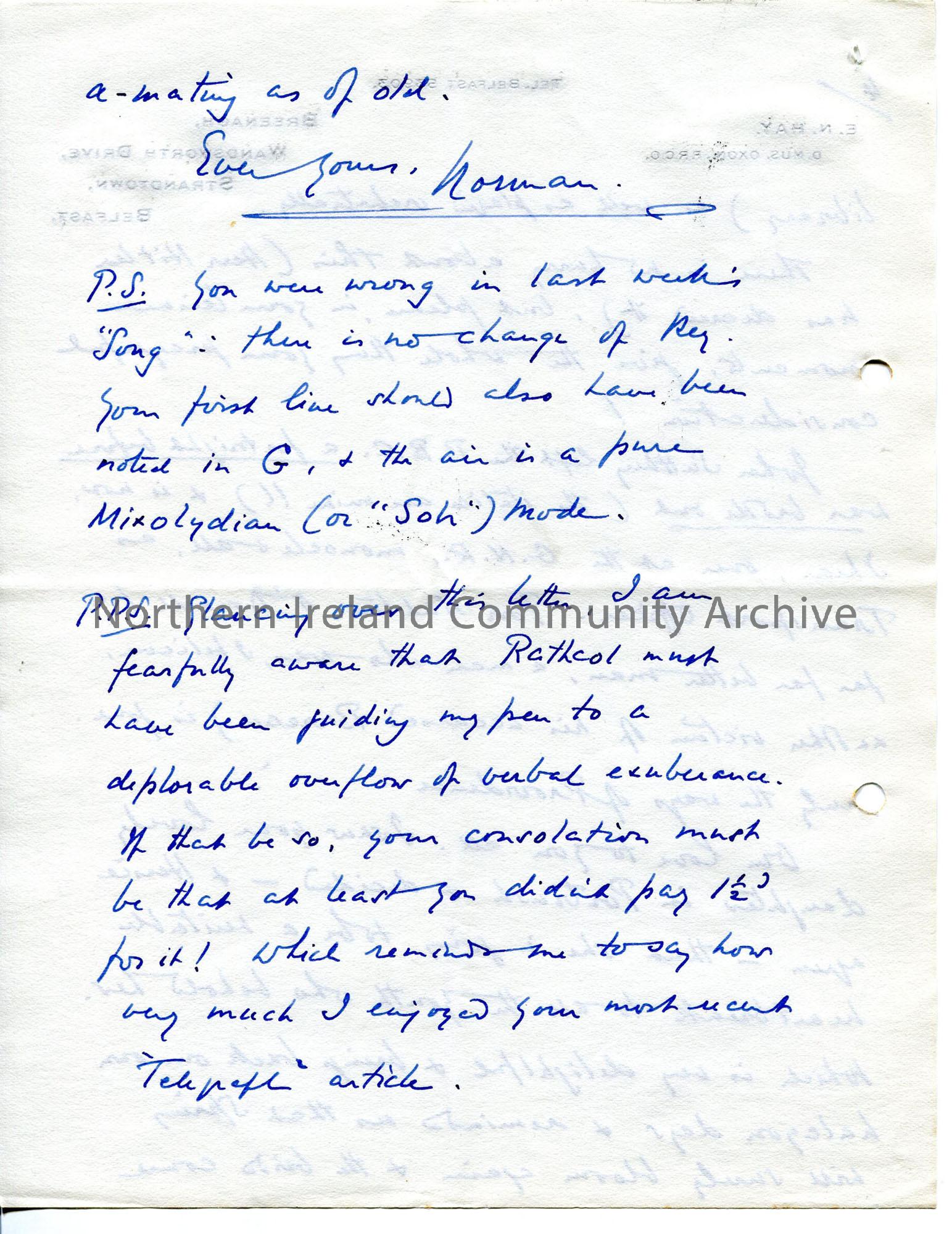 One of 4 pages of handwritten letter, using 8 sides. Hilter and WWII should not interrupt work on Ulster Airs but will affect broadcasting of it. Worr… – img068