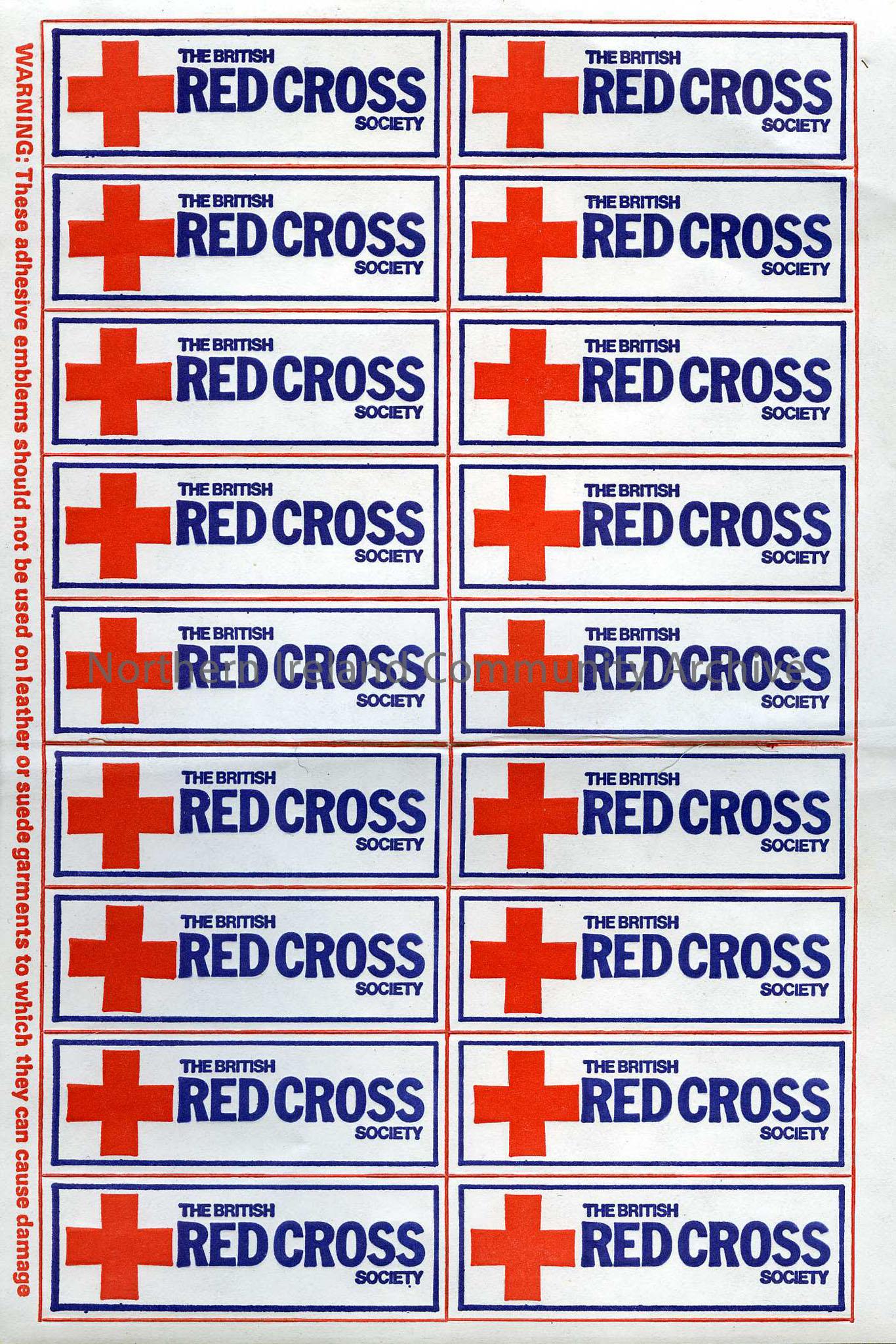 One page containing eighteen "The British Red Cross Society" stickers.