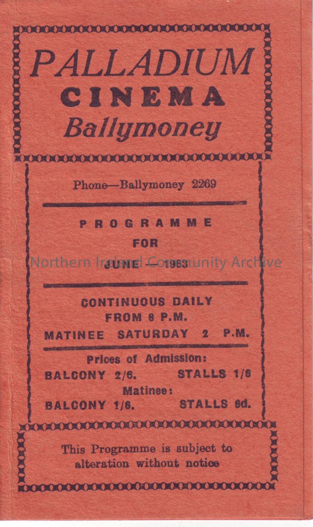 orange monthly programme for Ballymoney Palladium cinema- June 1963