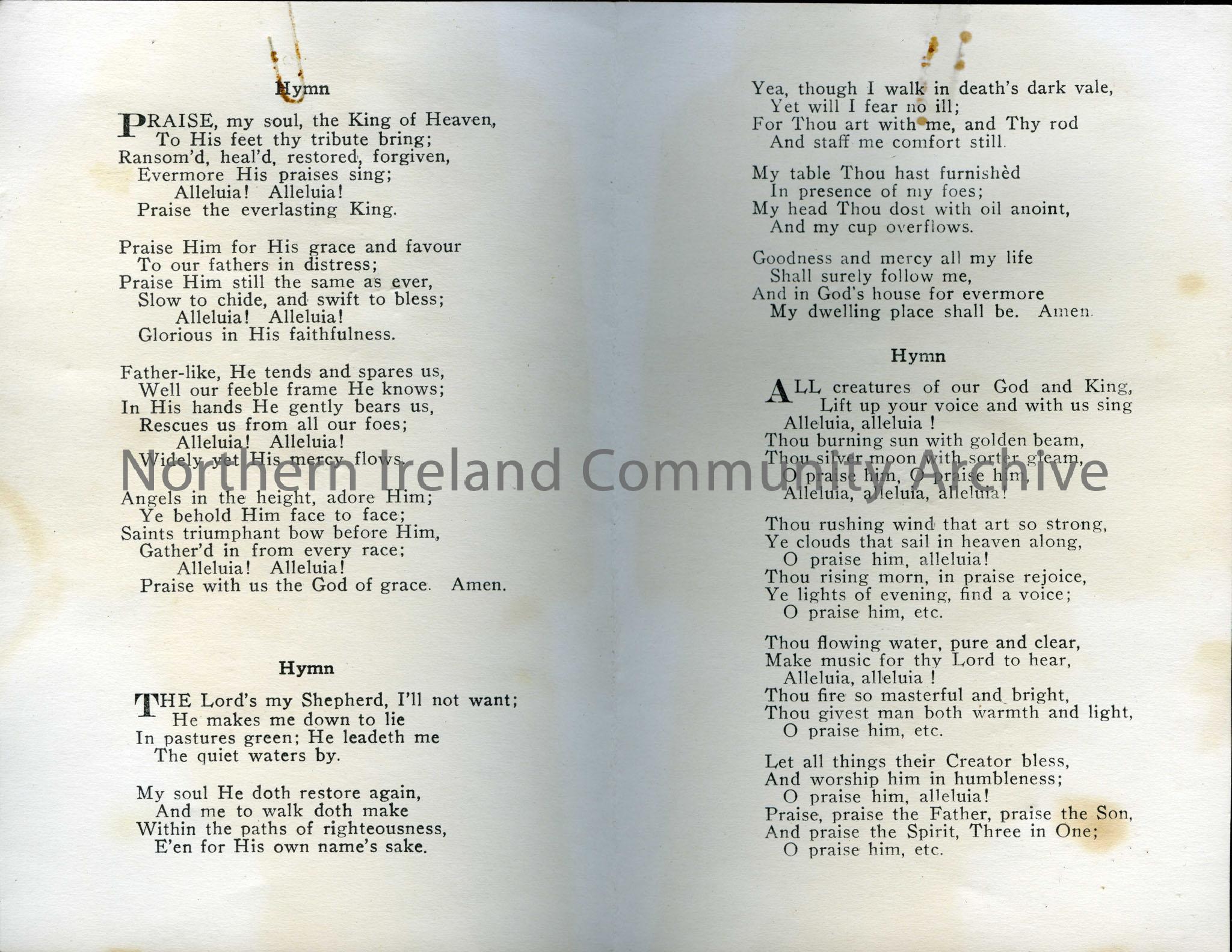 Order of service for the marriage of Major Thomas Lovtt Morony and Sally Clark of Upperlands. It took place in St. Martin’s Church, Blackheath on 22.4… – scan61b