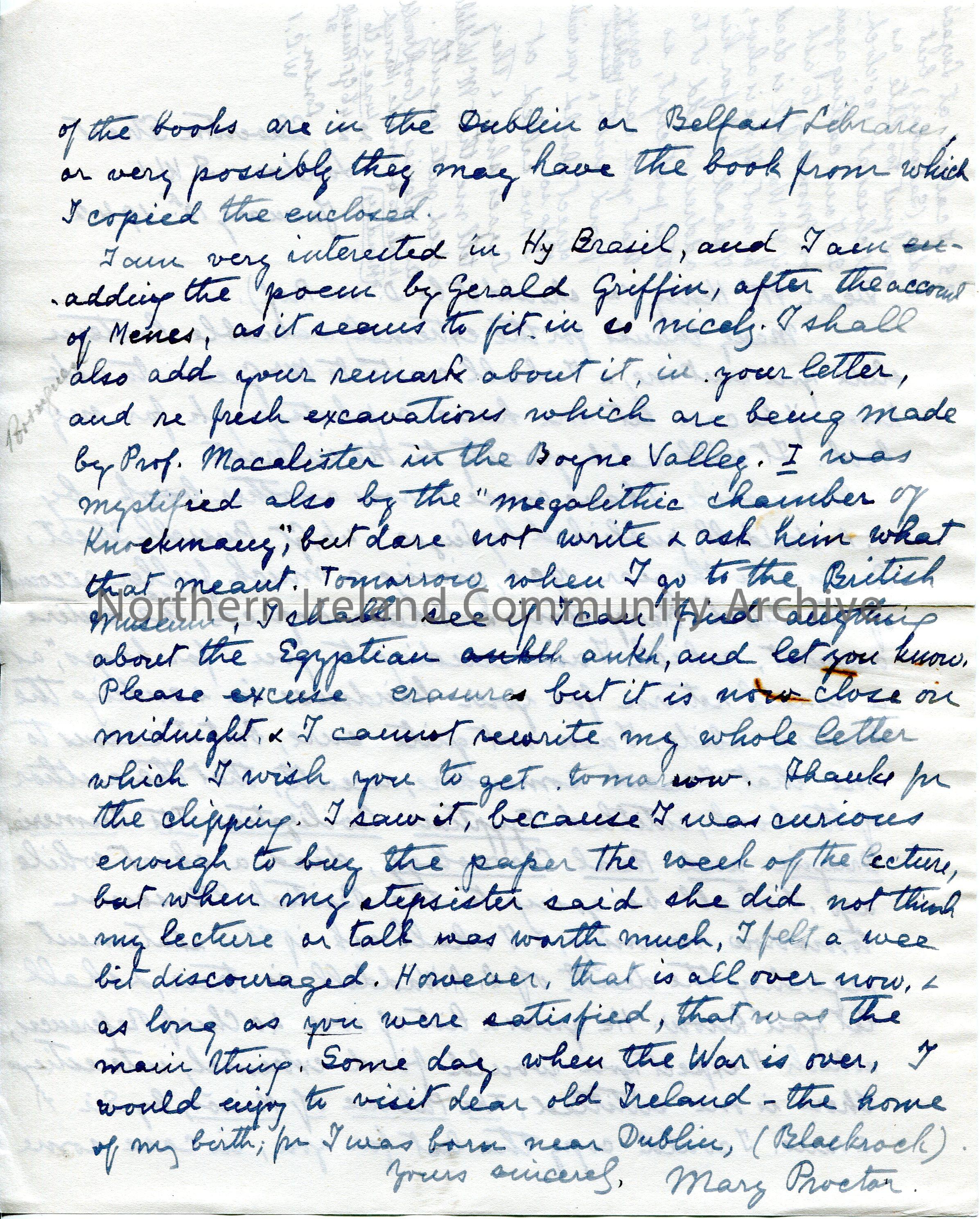 Page 1 of 10. Handwritten letter to Sam Henry including notes re ‘the Ankh – as the S. Sun cross’ with pencil drawing and notes taken from book ‘Egypt… – scan025b