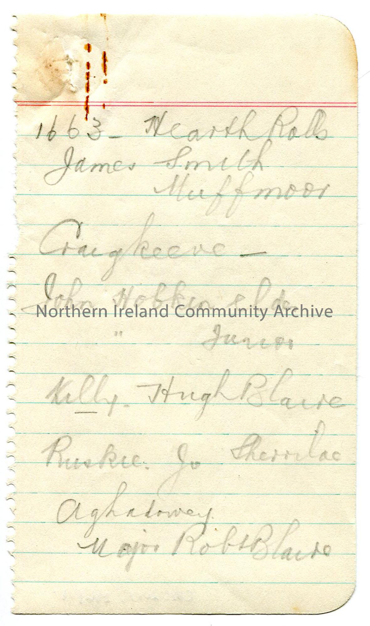 Page 1 of 13. Rough notes on lined paper which appear to be from a notebook. Re Sam’s research into the Blair family name.