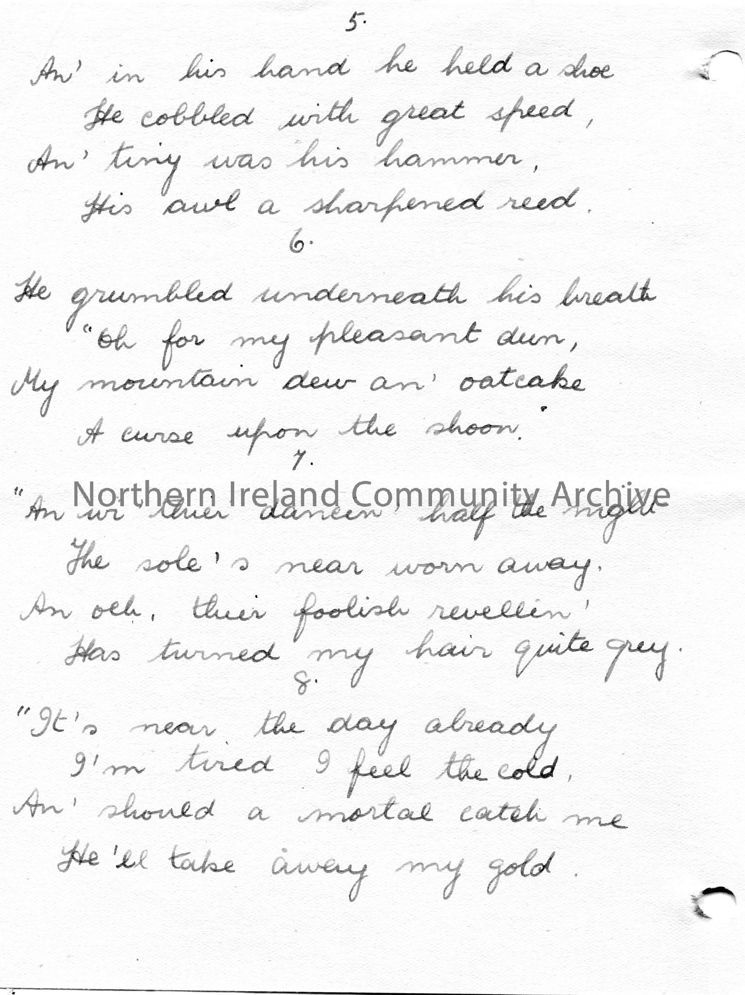 Page 1 of 2. Handwritten 14 verses of a poem or words to song titled, ‘The Leprechaun’. – scan134b
