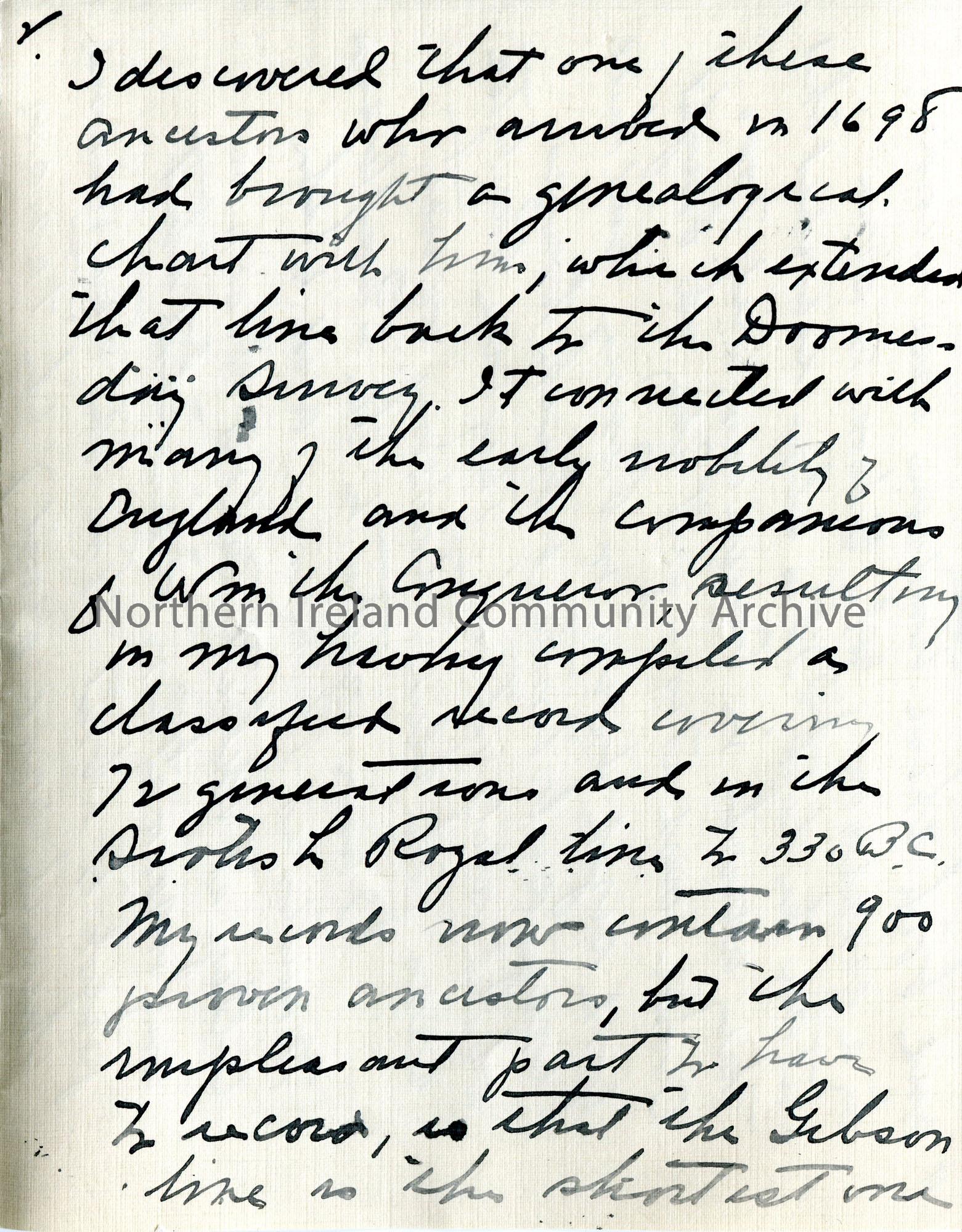 Page 1 of 2. Handwritten letter (folded and written on 4 sides) to Sam Henry from James E Gibson. Believes they have ancestral links in Buncrana, Co. … – scan009b