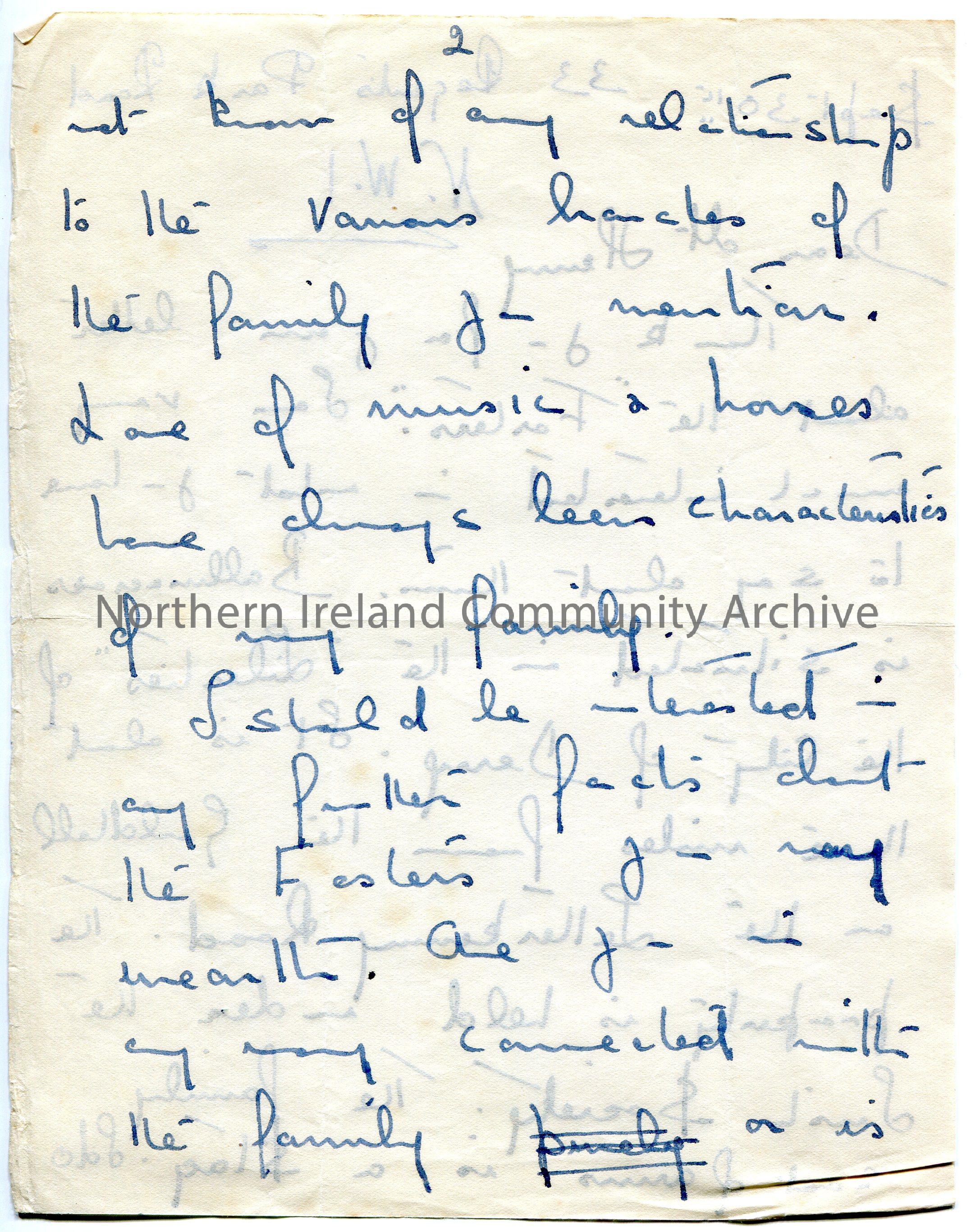 Page 1 of 2. Handwritten letter (page 1 double sided) to Mr Henry. They express an interest so Sam about the Foster family whom he asks about. Mentions Ballinacross which is held under the Irish Society.