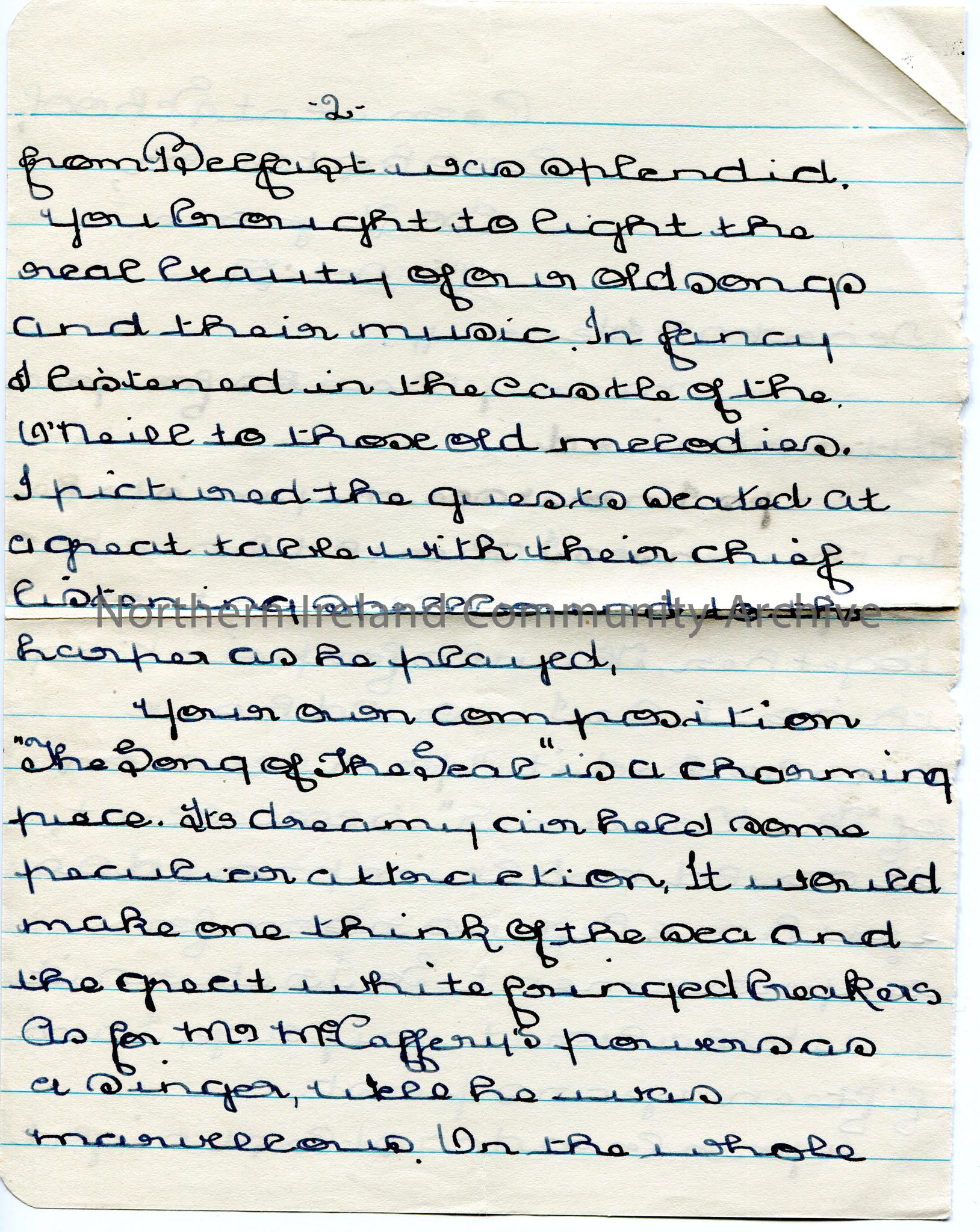 Page 1 of 2. Handwritten letter to Sam Henry. Thanks Sam for making corrections of their version of a song. Praises Sam’s version of the song ‘The Dec… – scan078b