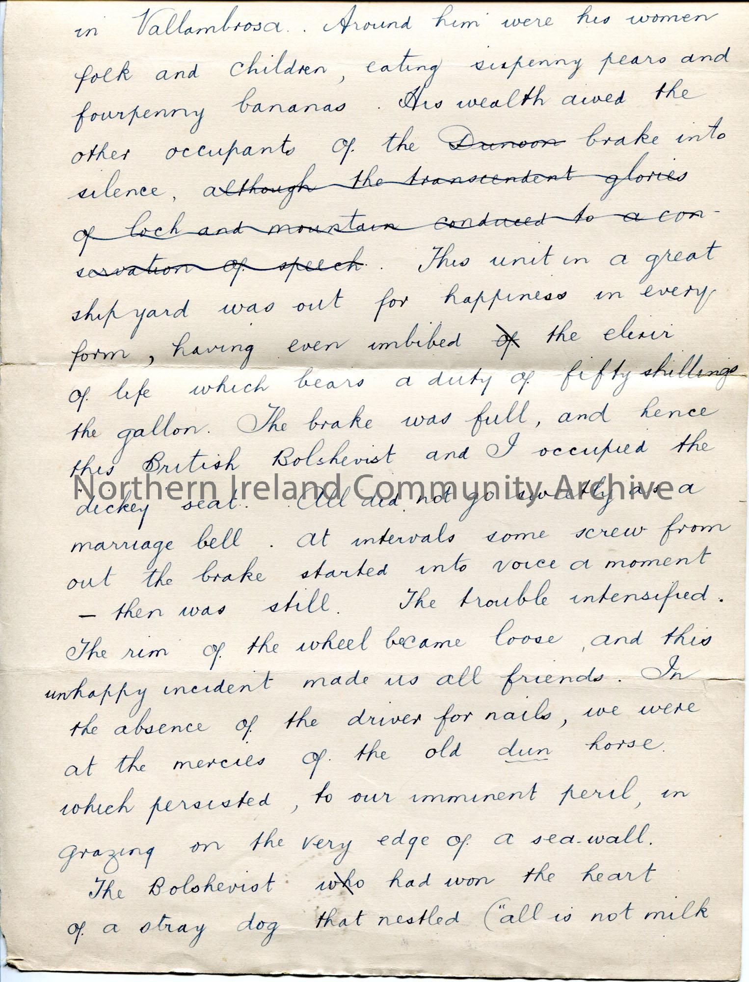 Page 1 of 2. Handwritten story for an entry for competition ‘Humorous Travel Incident’. Titled, ‘A British Bolshevist’. – scan024b